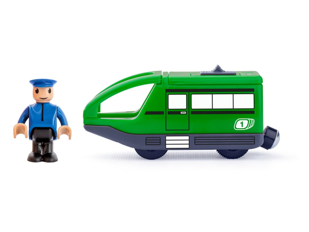 Přepínač lokomotivy s předním a zadním pohonem je umístěný na její střeše. Součástí tohoto výrobku je i strojvedoucí umístěný v kabině lokomotivy. Lokomotiva je kompatibilní se všemi našimi i ostatními vláčkodráhami dostupnými na našem trhu. Jednotlivé vagony se dají spojit magnetem. Věk: 3+. Rozměr: 10 x 4,5 cm
