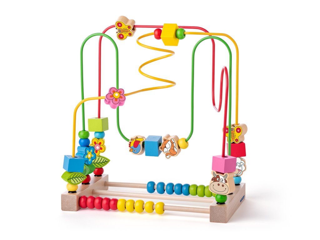 Motorická hračka pro nejmenší. Dítě posouvá korálky po spirálách a ohybech silné drátěné konstrukce. Rozvíjí jemnou motoriku. Věk: 2+ | Rozměr: 25,5 x 15 x 17 cm |
