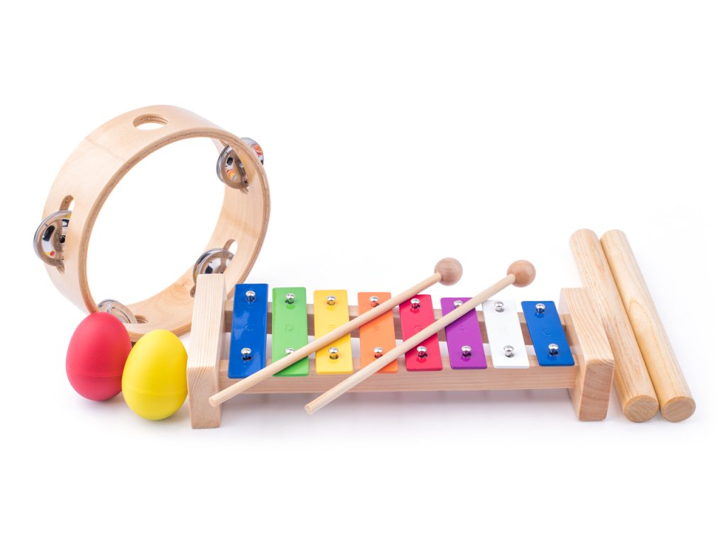 Muzikální set ( xylofon, tamburína, dřívka, 2 maracas vajíčka )