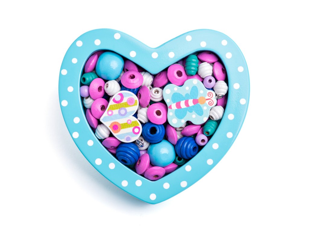 Sada obsahuje velké množství korálků různých tvarů a tenké tkanice s koncovkou k provlékání. Vhodné pro rozvoj jemné motoriky. Baleno v dřevěné krabičce. | Věk: 3+| Rozměr: 18 x 15cm