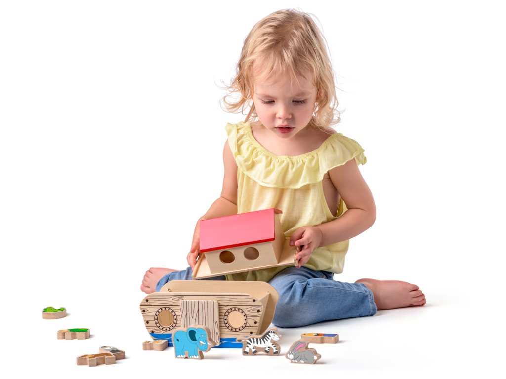 Hračka pomáhá rodičům představit a vyprávět dítěti biblický příběh o Noemově arše. Dítě si pak může se zvířátky hrát, vkládat je dovnitř a ven. | Věk: 2+ | Rozměr: 29 x 24 cm