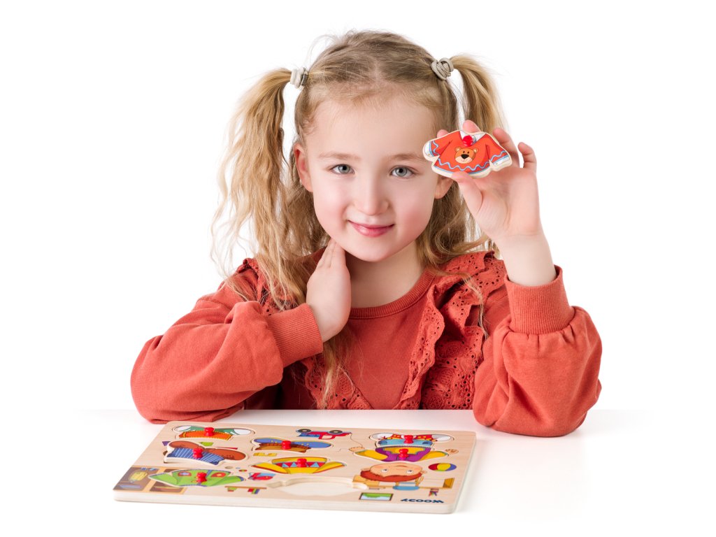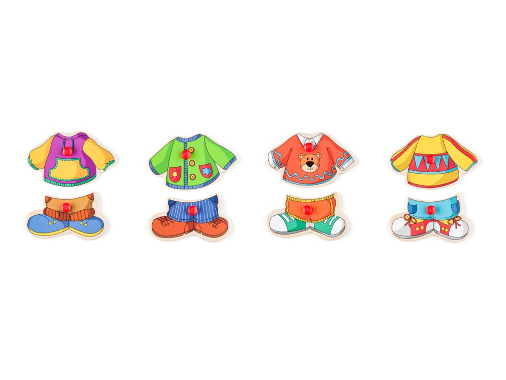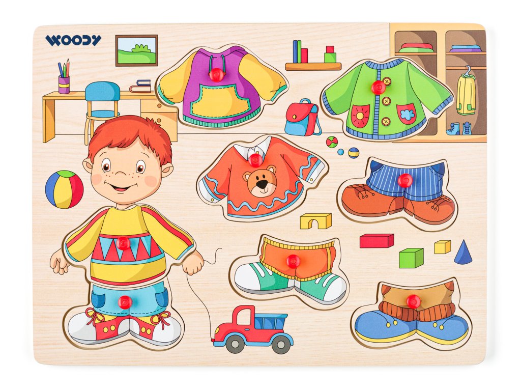 Věk: 3+ | Rozměr: 30 x 22,5 x 1 cm | | Hra na oblékání, kdy se děti učí oblékat svršky a boty, které se k sobě hodí. Slouží i jako jednoduché puzzle.