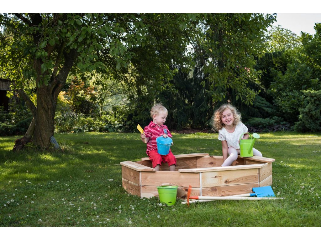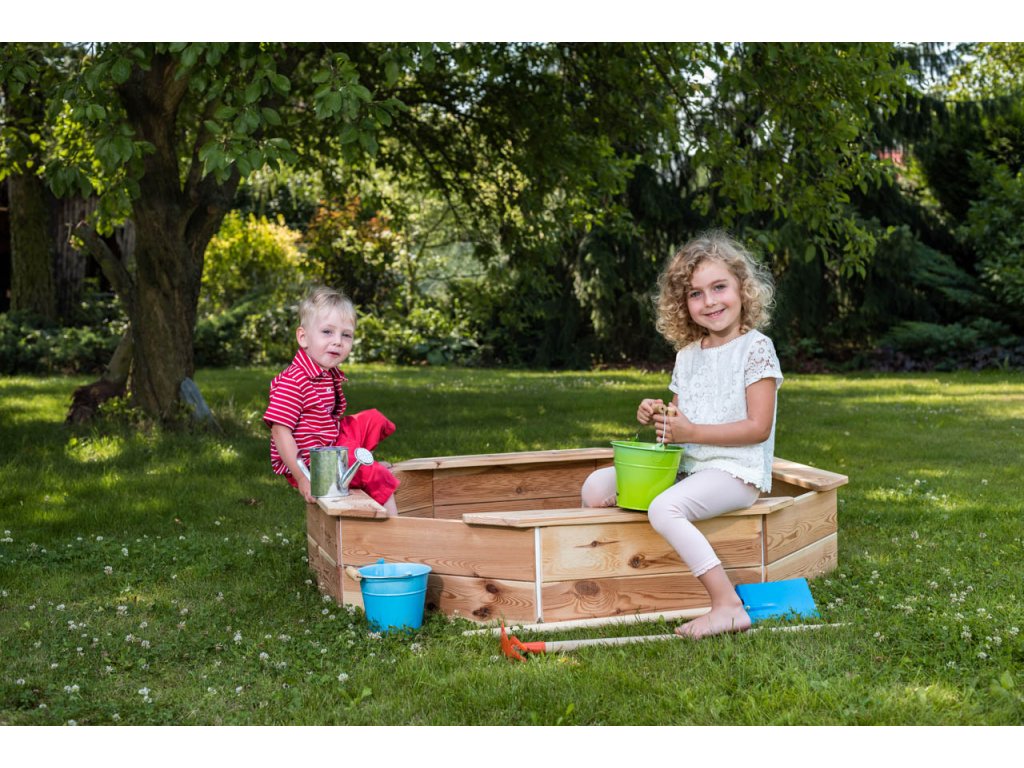 Rozměry pískoviště jsou 130 x 130 x 26 cm. Pískoviště je vybaveno ochrannou sítí, která chrání písek před zvířaty, spadaným listím a jinými nečistotami v době, kdy si v něm děti nehrají. Síť je vybavena úchyty a korpus pískoviště háčky. Věk: 3+