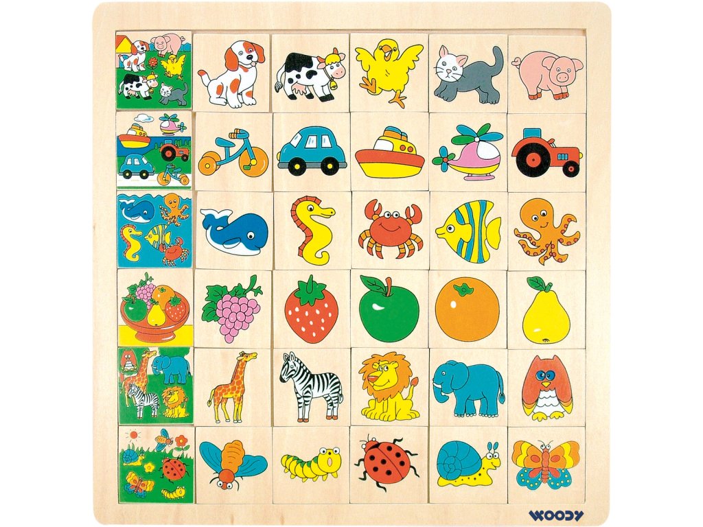 Věk: 3+ | Rozměr: 93006 | | Obrázková skládanka pomáhá dětem rozpoznávat a uvědomovat si předměty, které mohou vidět kolem sebe. Hra procvičuje jejich bystrost a schopnost soustředit se. Na začátek řádku patří vždy jeden hromadný obrázek. Dítě má za úkol přiřazovat do řádku jednotlivé samostatné obrázky, které tam dle obsahu náleží.
