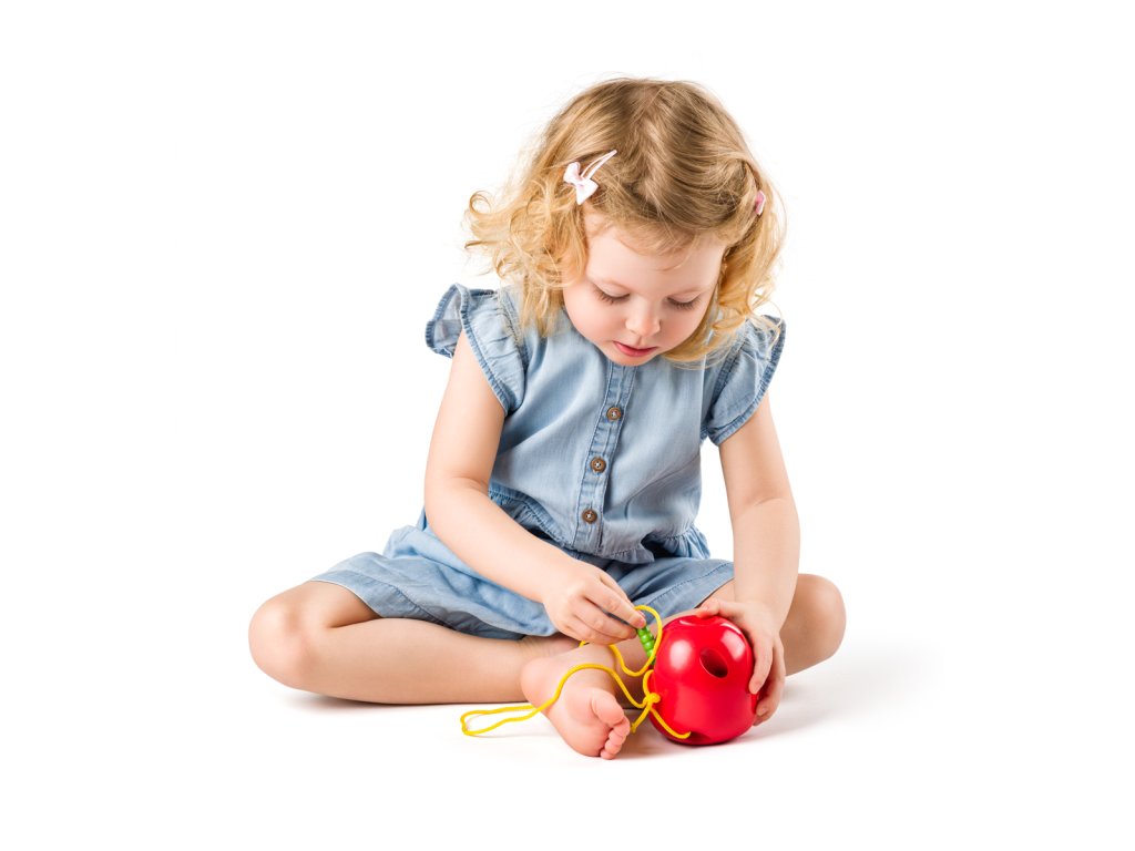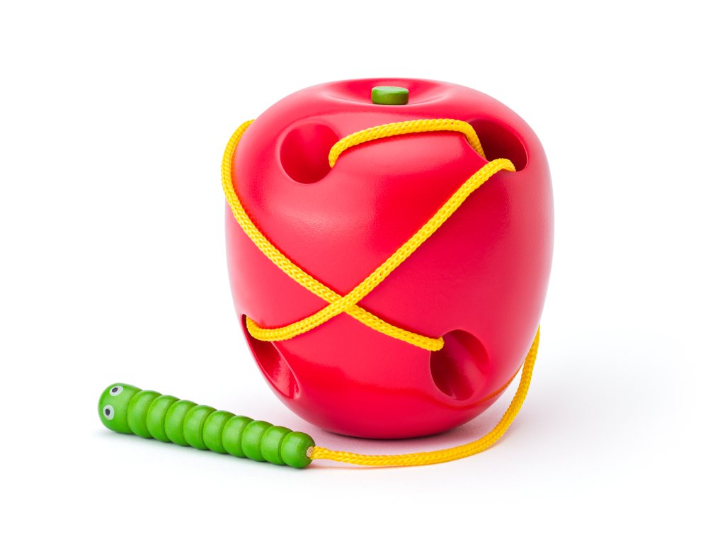 Veselá provlékací hra, podporuje manuální zručnost a připravuje děti na skutečné šití. Dítě provléká červíka uchyceného na tkaničce děravým jablkem a tím cíleně cvičí jemnou motoriku. Věk: 3+ Rozměr: cca 8,5 cm průměr