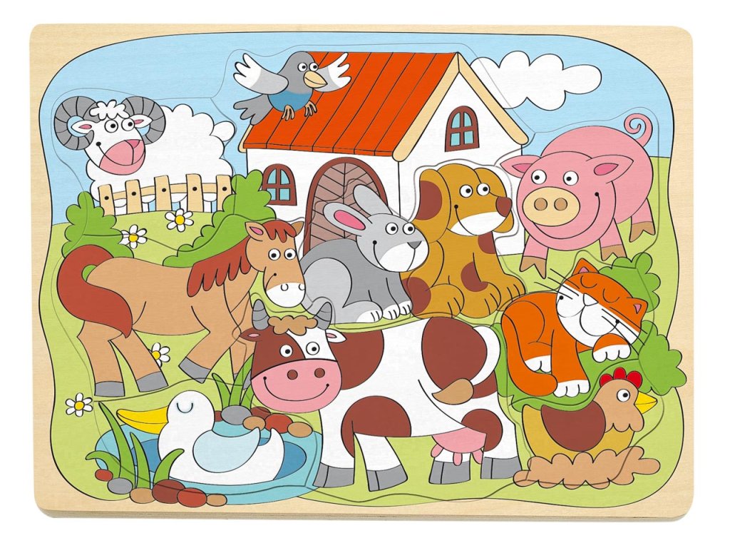 Puzzle je tvořeno skupinkou zvířat, která jsou od sebe oddělena výsekem. Při skládání je dítě skládá tak, aby znovu vytvořili jeden celek. | Věk: 3+ | Rozměr: 30x23cm |