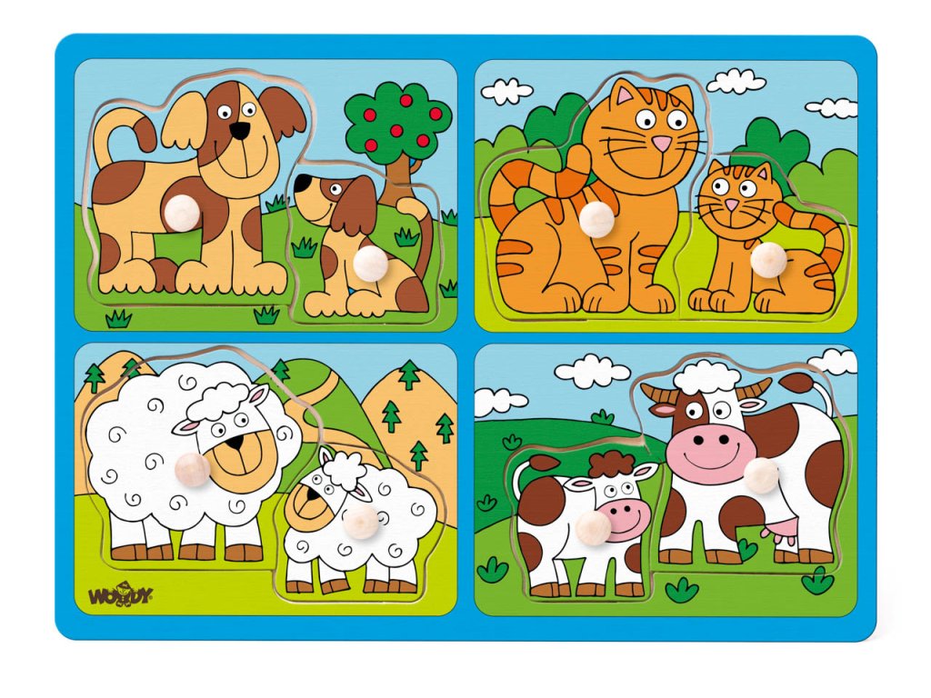 Puzzle pro nejmenší s úchyty - domácí zvířata s mláďaty,