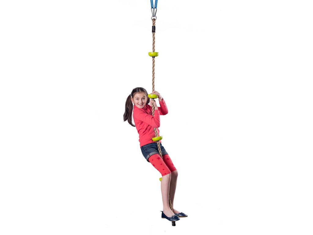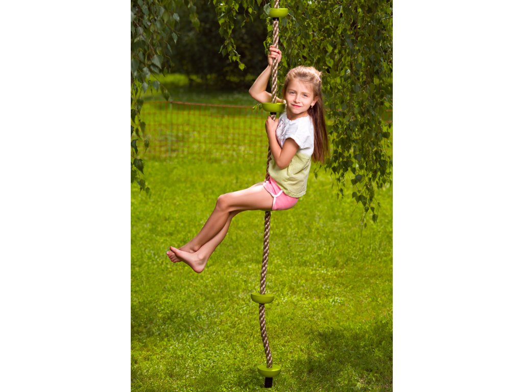 Lano je opatřeno stupátky, které pomáhají dětem zafixovat svoji polohu při šplhání i houpání se na laně. Věk: 3+ | Délka: 200 cm | Nosnost: 80 kg