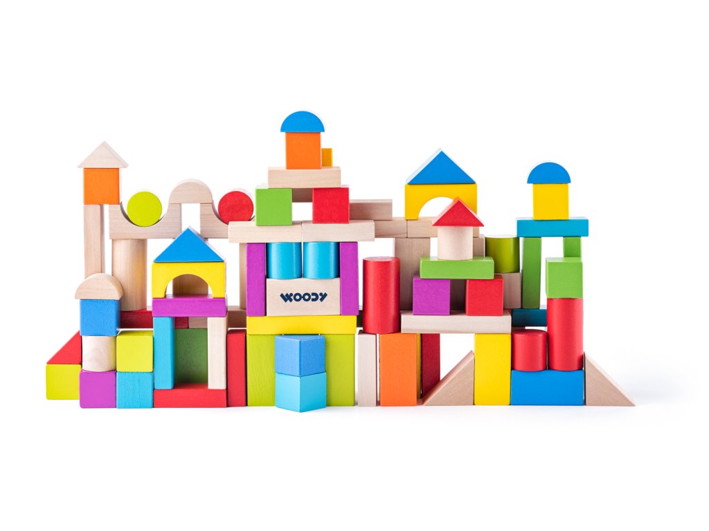 Stavebnice kostky barevné/natur s prostrkávacím víkem, 100 dílů