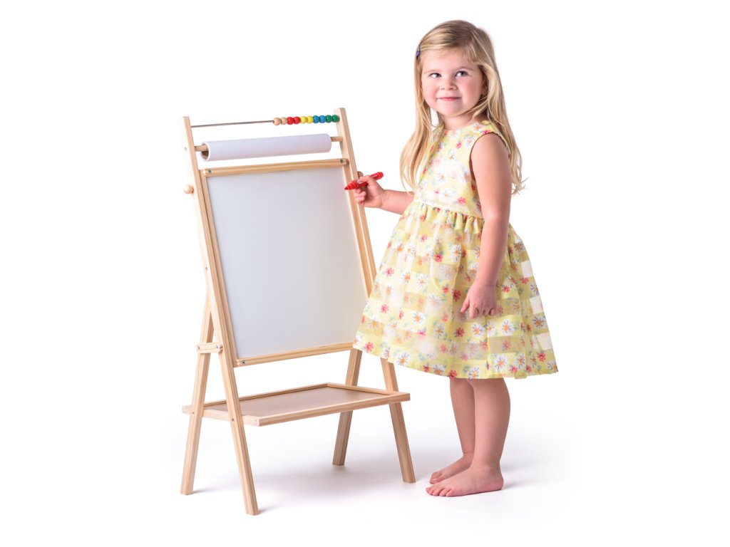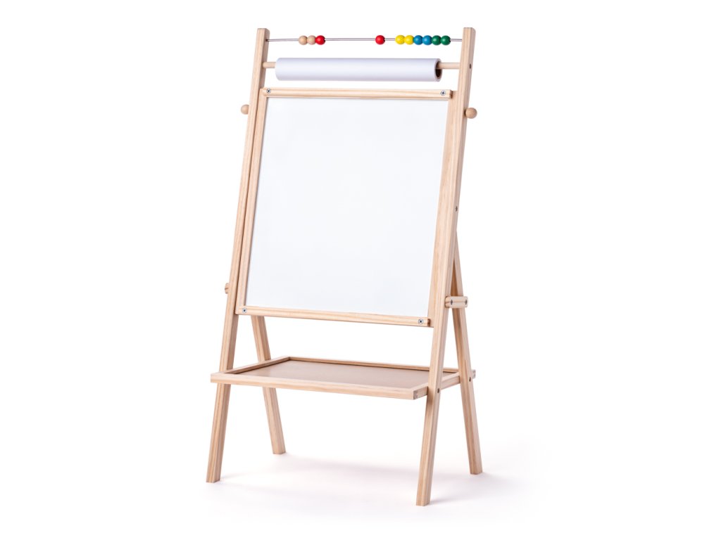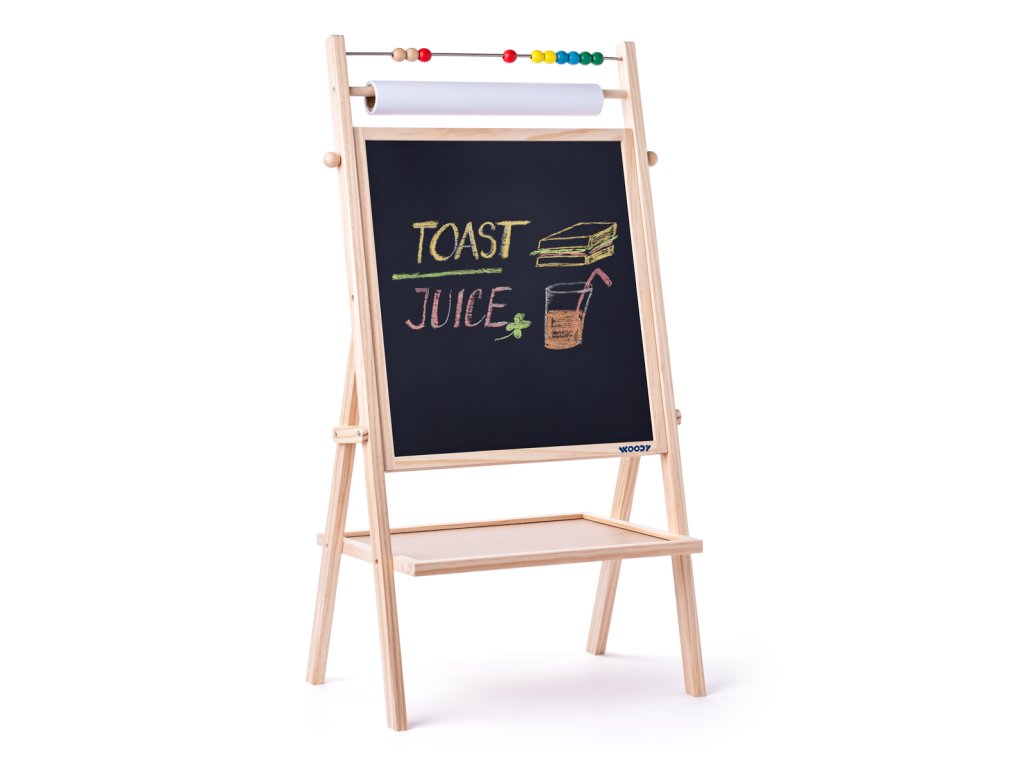 Magnetická oboustranná školní tabule v praktickém provedení s tyčkou pro roli papíru. Z jedné strany je tabule černá pro malování křídou a z druhé je bílá pro malování suchým fixem. Ve vrchní části tabule je umístěno jednoduché počítadlo. | Rozměr: 40,5 x 80,5 x 4,5 cm. Věk: 3+.