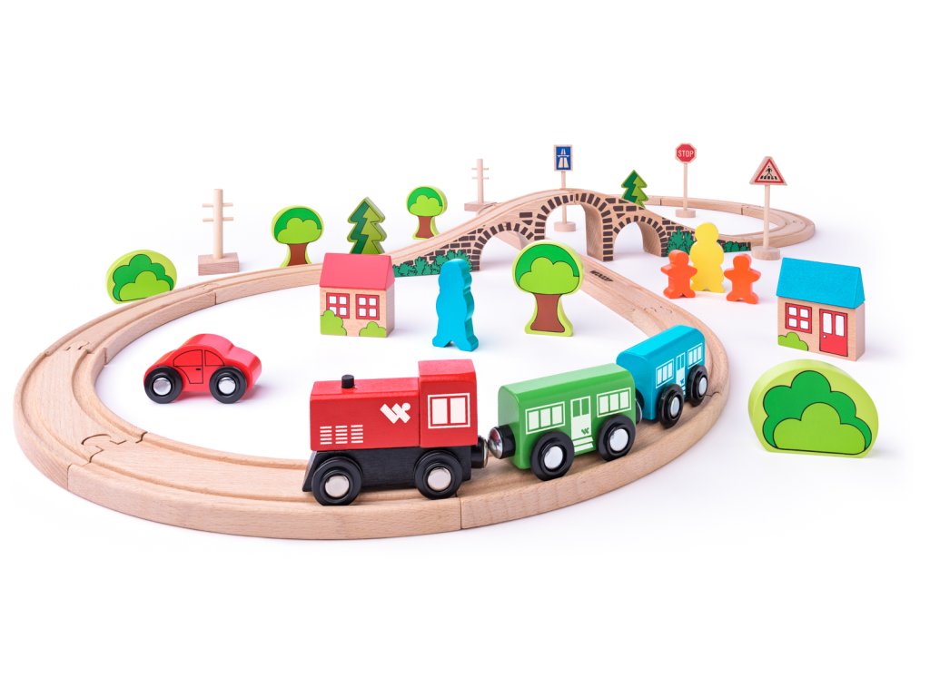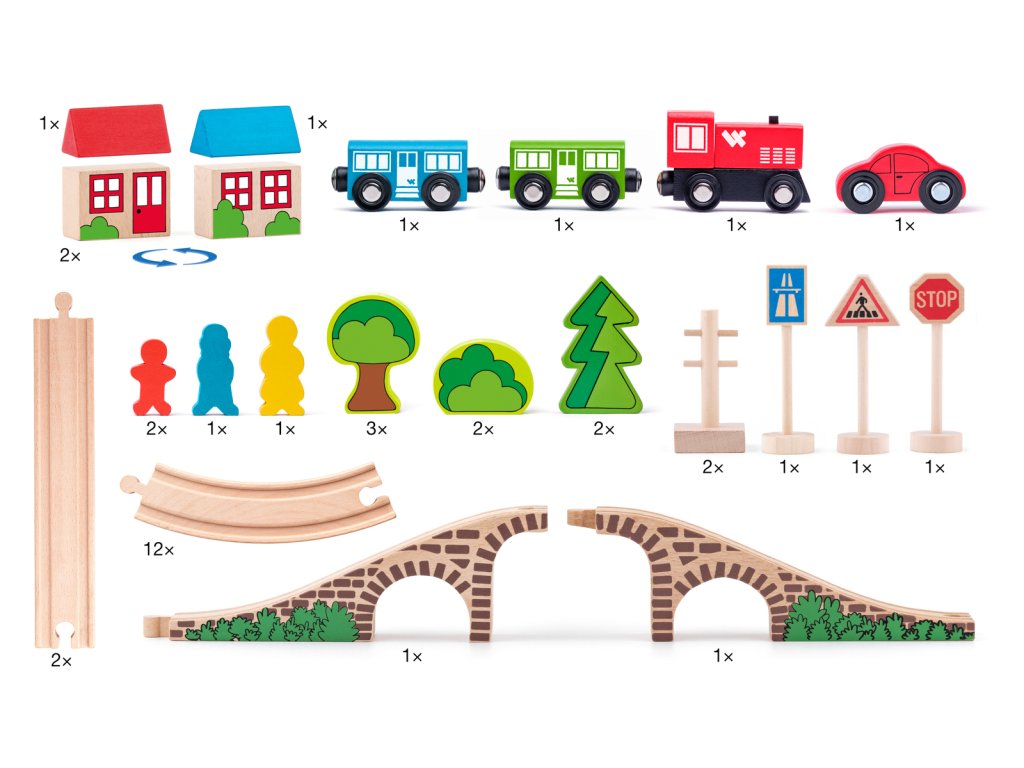 Příslušenství této vláčkodráhy je navrženo českým designerem. Vláčkodráha je vhodná jako první vláčkodráha do vaší sbírky. Další díly můžete dokupovat dle vaší individuální potřeby. | Věk: 3+| Rozměr rozložené vláčkodráhy: 110 X 47 cm | Rozměr kartonu: 43 x 80 cm | Počet dílů: 40