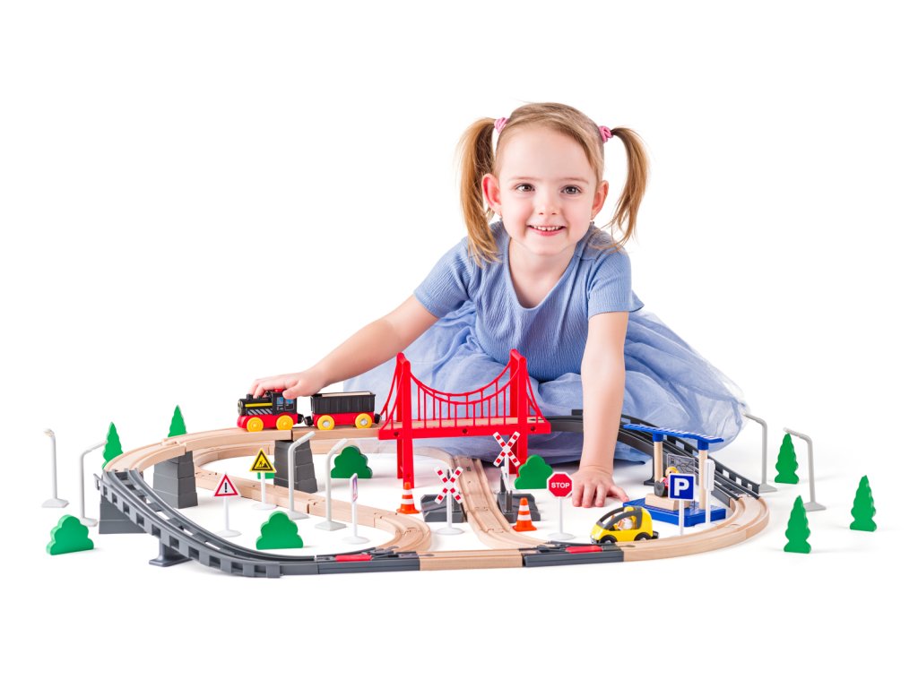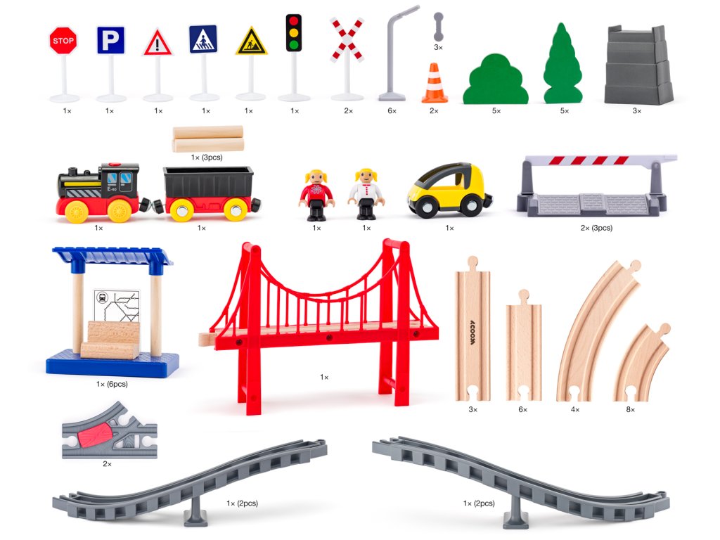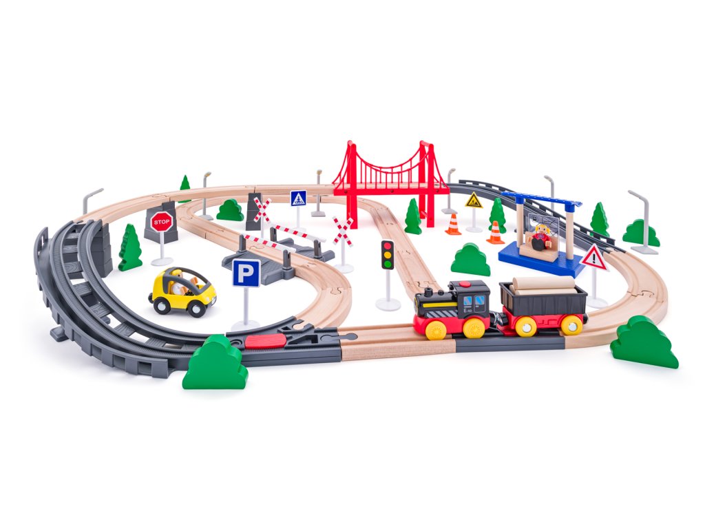 Vláčkodráha s elektrickou mašinkou a mostem, 80 dílů