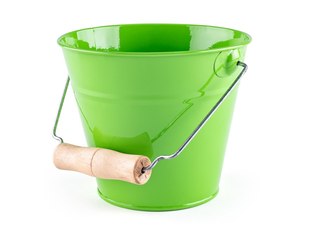 Plechový kyblíček je určen nejen pro děti na pískoviště. Může sloužit rovněž jako dekorace či květináč pro pokojové rosliny nebo bylinky. Kyblík má na oušku dřevěnou ručku. Rozměr: 13,5 x 16 x 16 cm. Věk: 3+