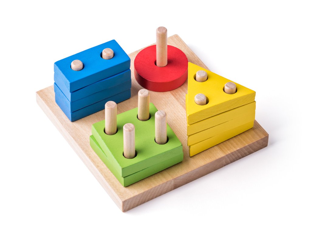 Věk: 2+. 15 x 15x 7 cm. Logická hra pro nejmenší, kde je úkolem dítěte, podle tvaru, barvy a počtu kolíků, navléknout a umístit destičku na správné místo. Obsahuje 16 dílů. Video: https://www.youtube.com/watch?v=GYKiWVvzoyE
