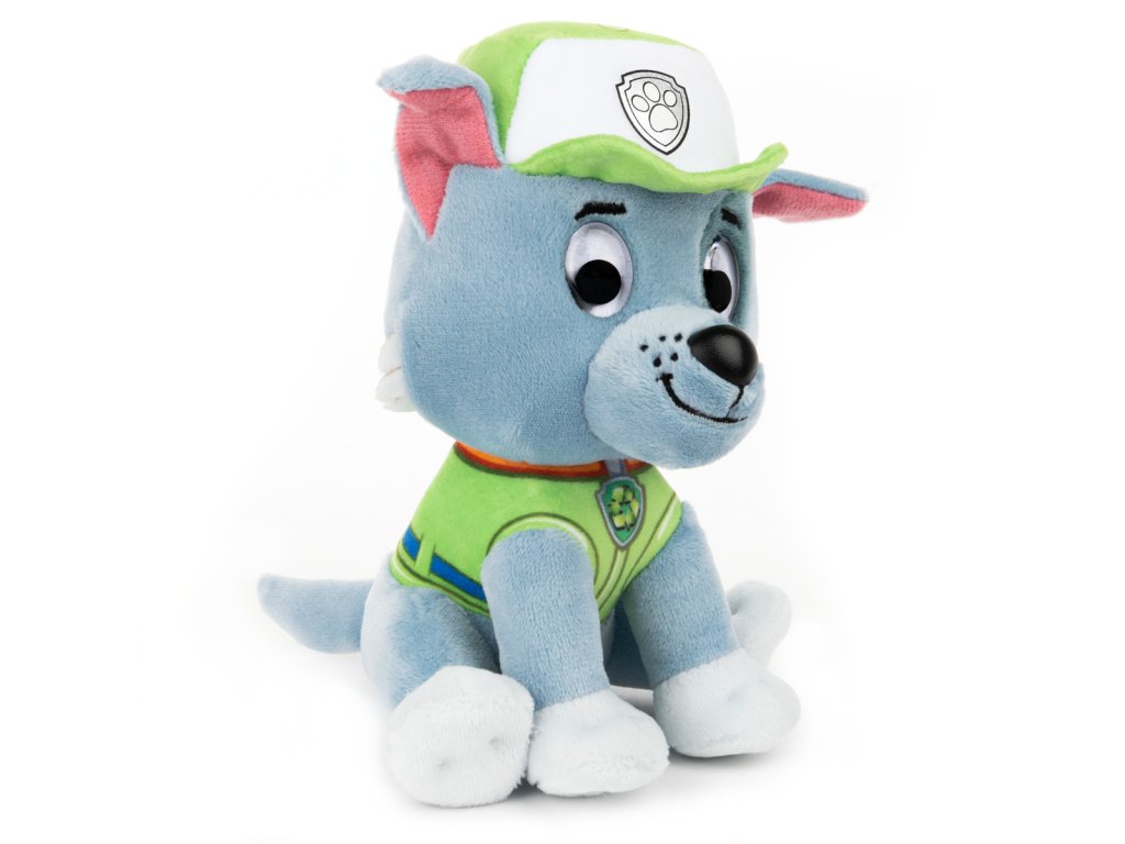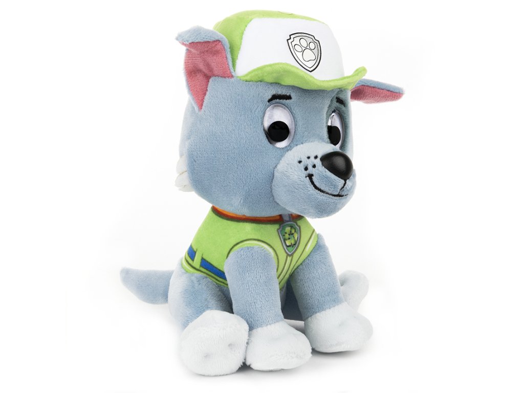 Paw Patrol Plyšák Rocky. Odvážná štěňata z Paw Patrol v podobě roztomilých plyšáků jsou připravena zachránit situaci. Rocky je roztomilý plyšový šedobílý pejsek. Je dokonalým společníkem pro fanoušky Tlapkové patroly. 15 cm vysoký plyšák Rockyho má na sobě typickou uniformu, jako opravář a ekolog. Rozměry balení: 17,2 x 11,4 x 10,8 cm. Věk: 1+