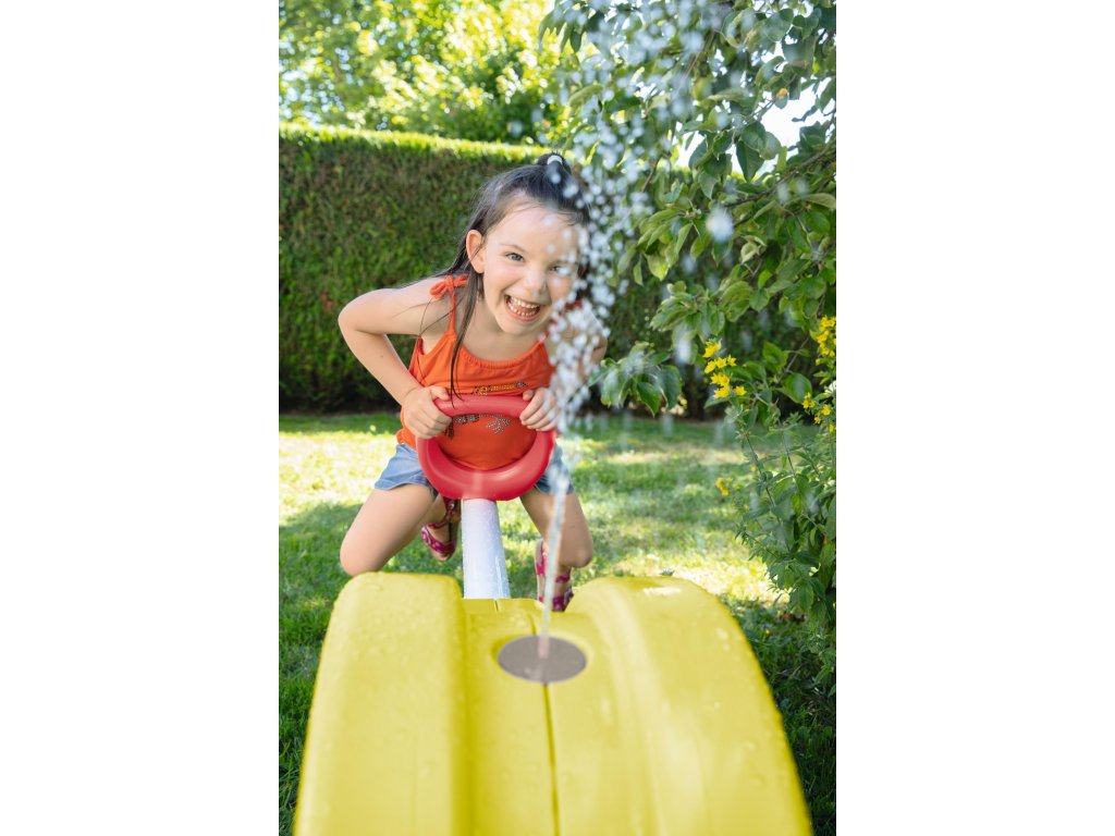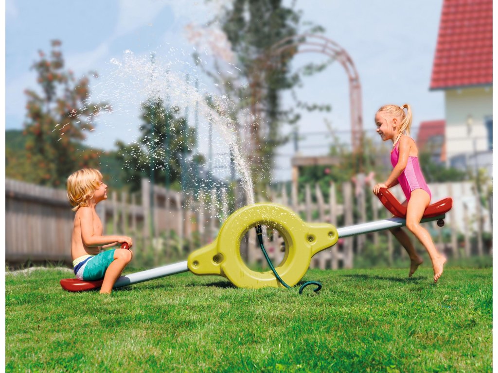 Houpačka s funkcí rozprašování vody přináší zábavu a v létě osvěžení. Střední část houpačky lze připojit k hadici na vodu pomocí standardizovaného hadicového připojení včetně těsnění. Houpačka má robustní sedadla s rukojetí a kovové nápravy pro stabilní a bezpečnou zábavu při houpání. Na každou stranu lze naložit až 50 kg.