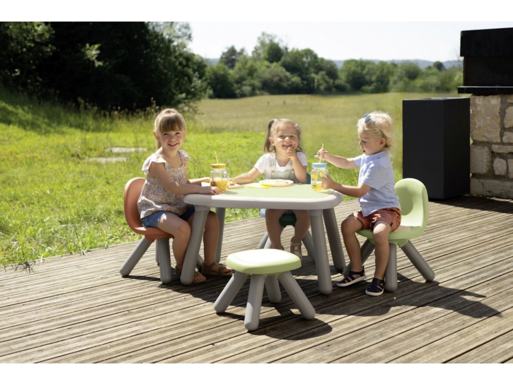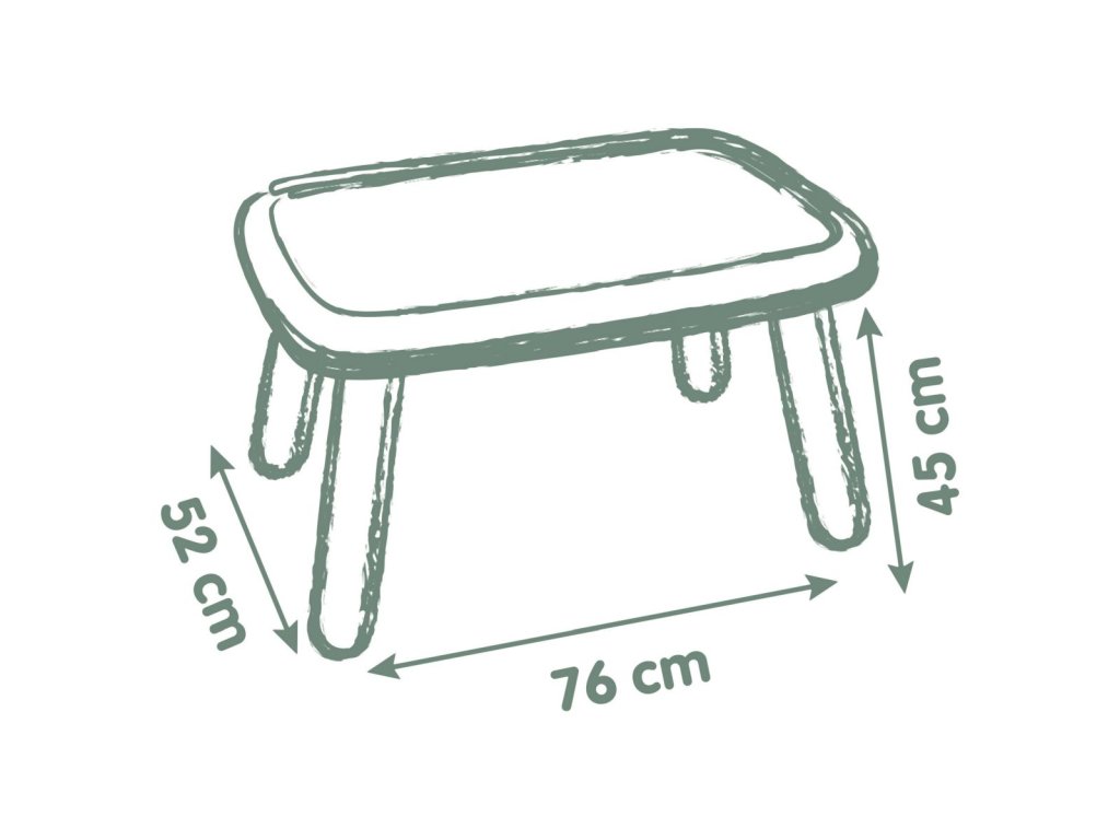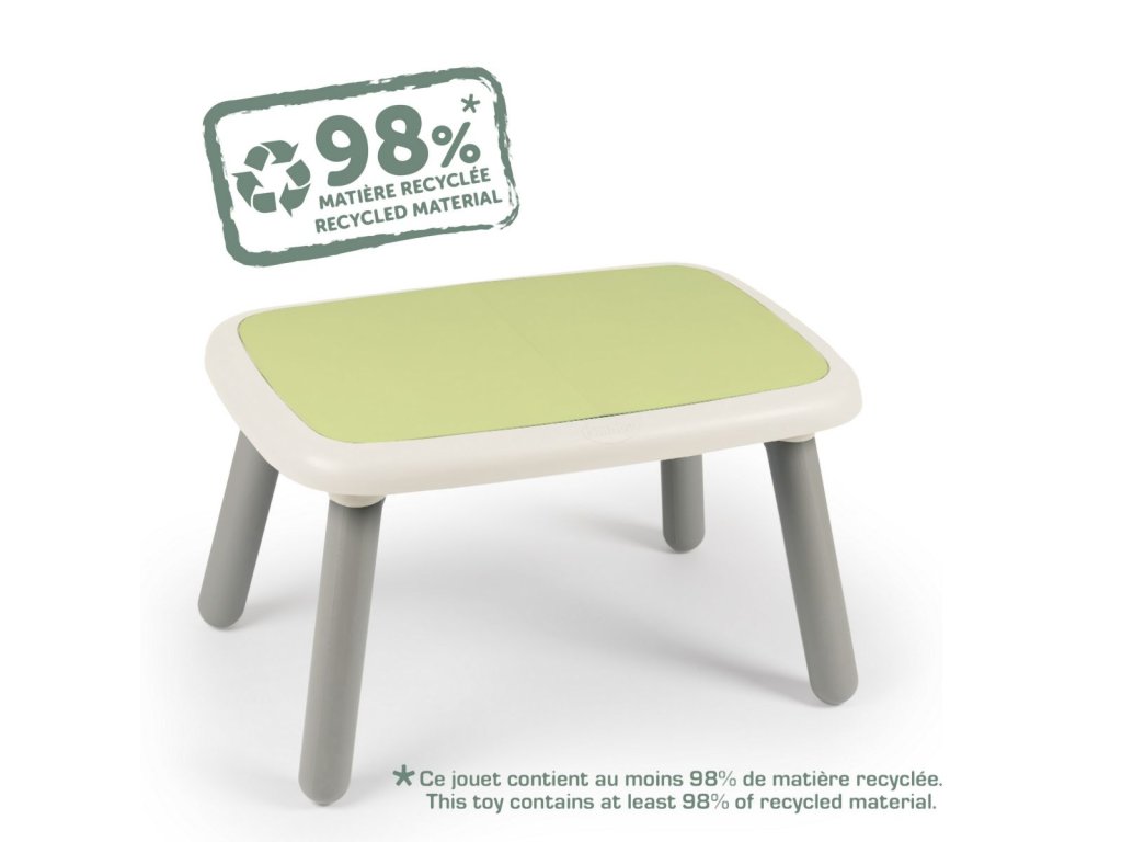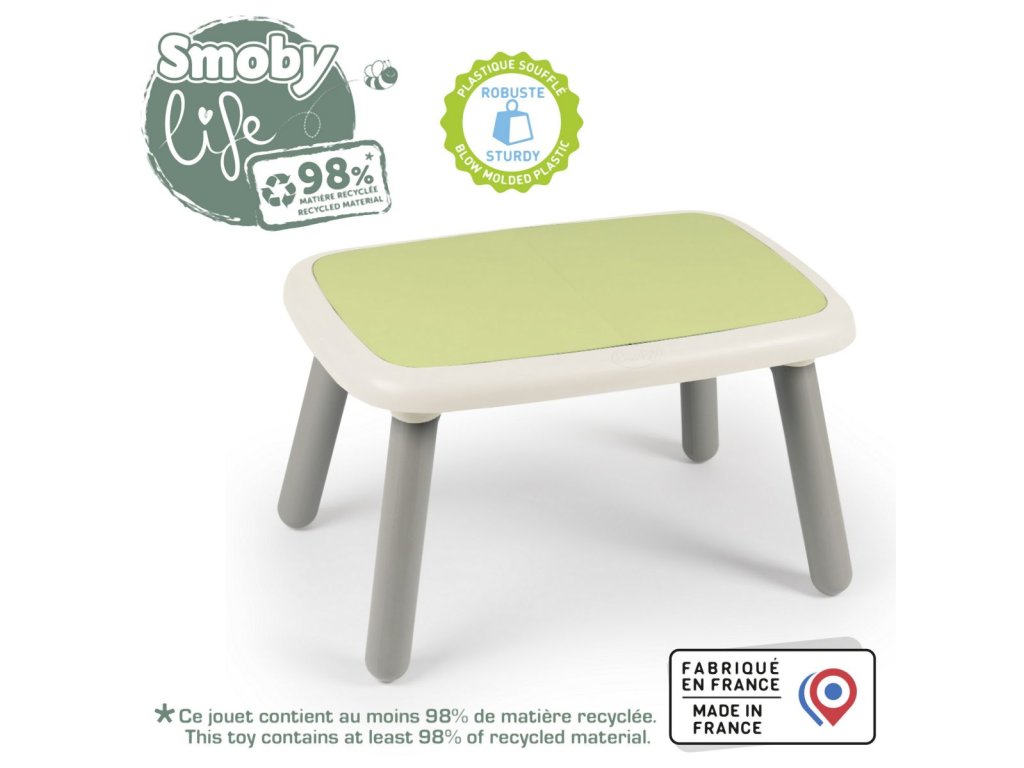 Robustní a designový stoleček pro děti je vhodný pro použití uvnitř i venku. ke stolečku se pohodlně vejdou až 4 děti. Anti-UV ošetření zaručuje dobrou odolnost a trvanlivost barev. Barva zelená. Tento výrobek obsahuje minimálně 98 % recyklovaného materiálu. Rozměry stolečku: 76 x 45 x 52 cm (ŠxVxH). Hmotnost 3,6 kg.