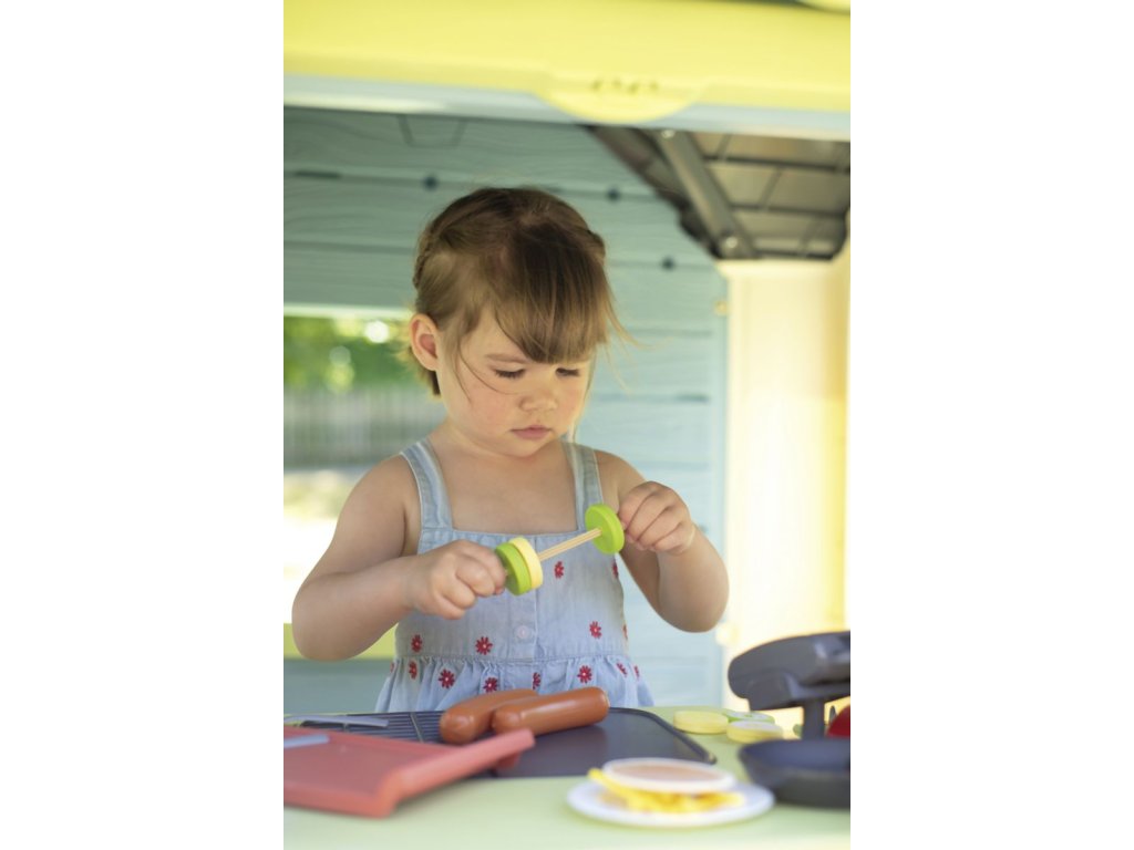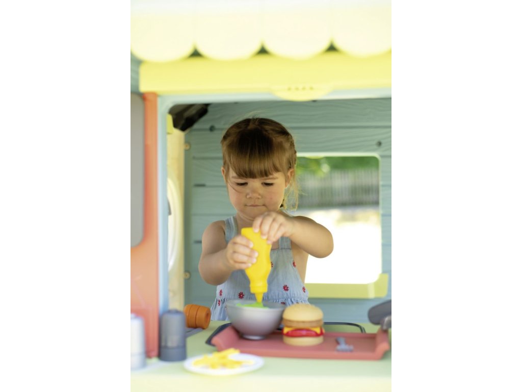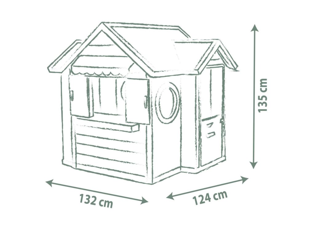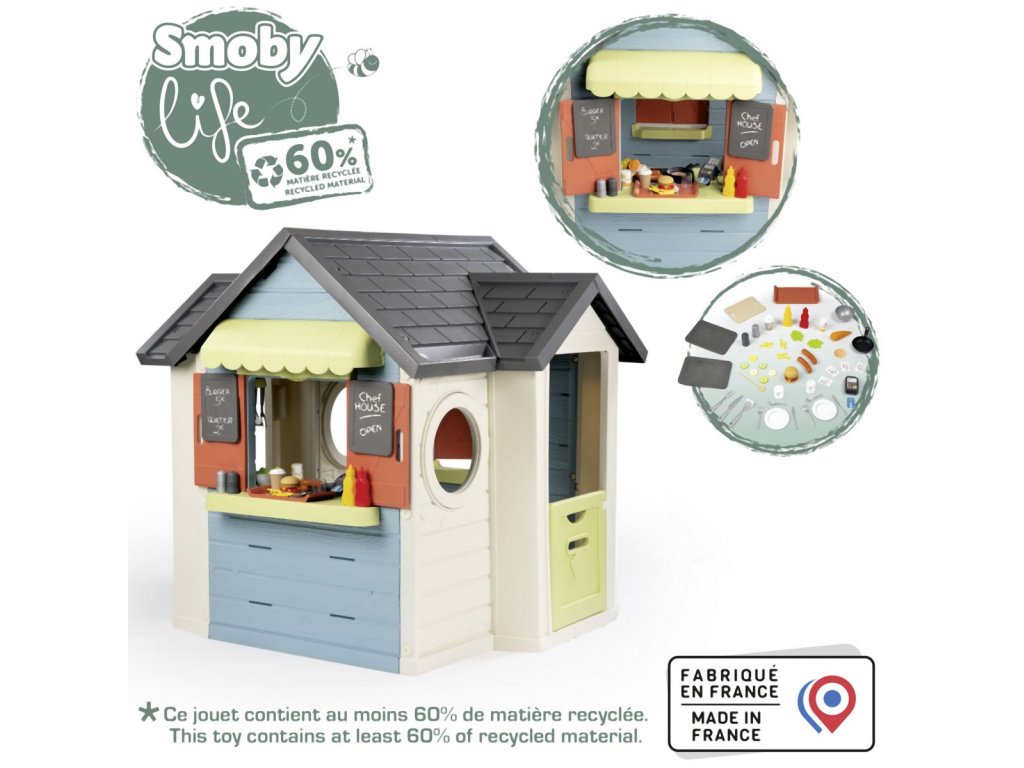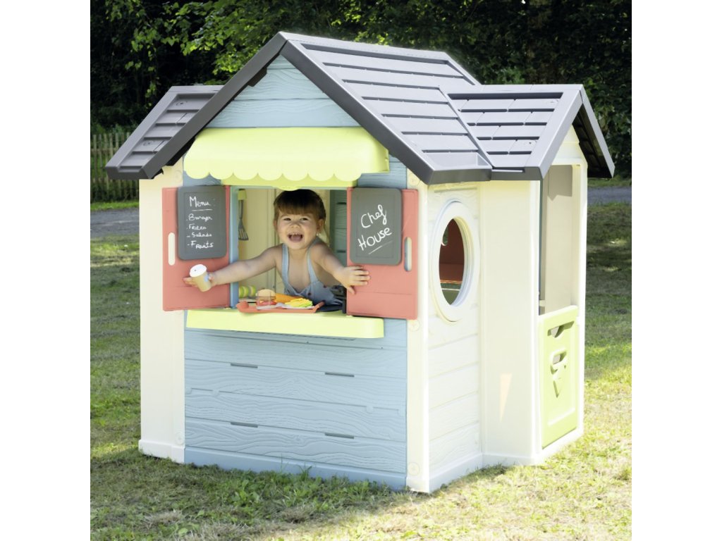 Domeček Chef kombinuje zahradní domeček, restauraci a obchod. S pultem, markýzou, malou kuchyňkou, pokladnou, herním jídlem a další. Domeček má malé vstupní dveře a dvě okna s otočnými žaluziemi. Disponuje dvěmi tabulemi, na které lze napsat menu nebo otevírací dobu. Součástí příslušenství je lednice, trouba, plynový gril s pohyblivými plameny, dřez s kohoutkem, dvě police, pokladna s kalkulačkou a čtečkou kreditních karet, vč. karty. K dispozici jsou také sladká a slaná jídla, kečup, omáčky, pánvička se snadným otáčením s palačinkou, slánka a pepřenka s „cvaknutím“, příbory a nádobí. Stabilní robustní odolný plast s ochranou proti UV záření. Obsahuje celkem 48 kusů příslušenství. Domeček je kompatibilní s veškerým příslušenstvím, kromě komína. Výška dveří od země 46,3 cm. Tento výrobek obsahuje minimálně 60 % recyklovaného materiálu. Rozměry sestaveného domečku: 124 x 132 x 135 cm (DxŠxV).