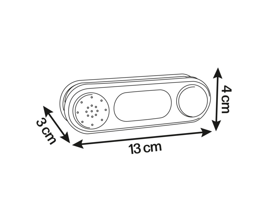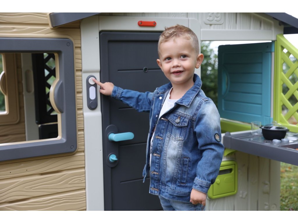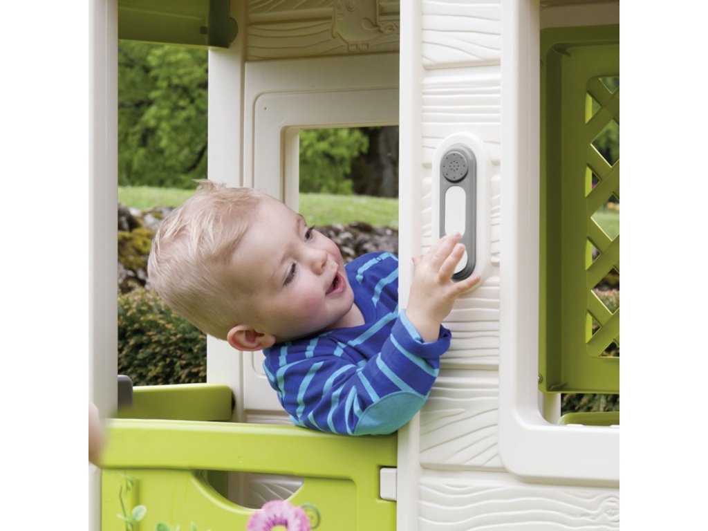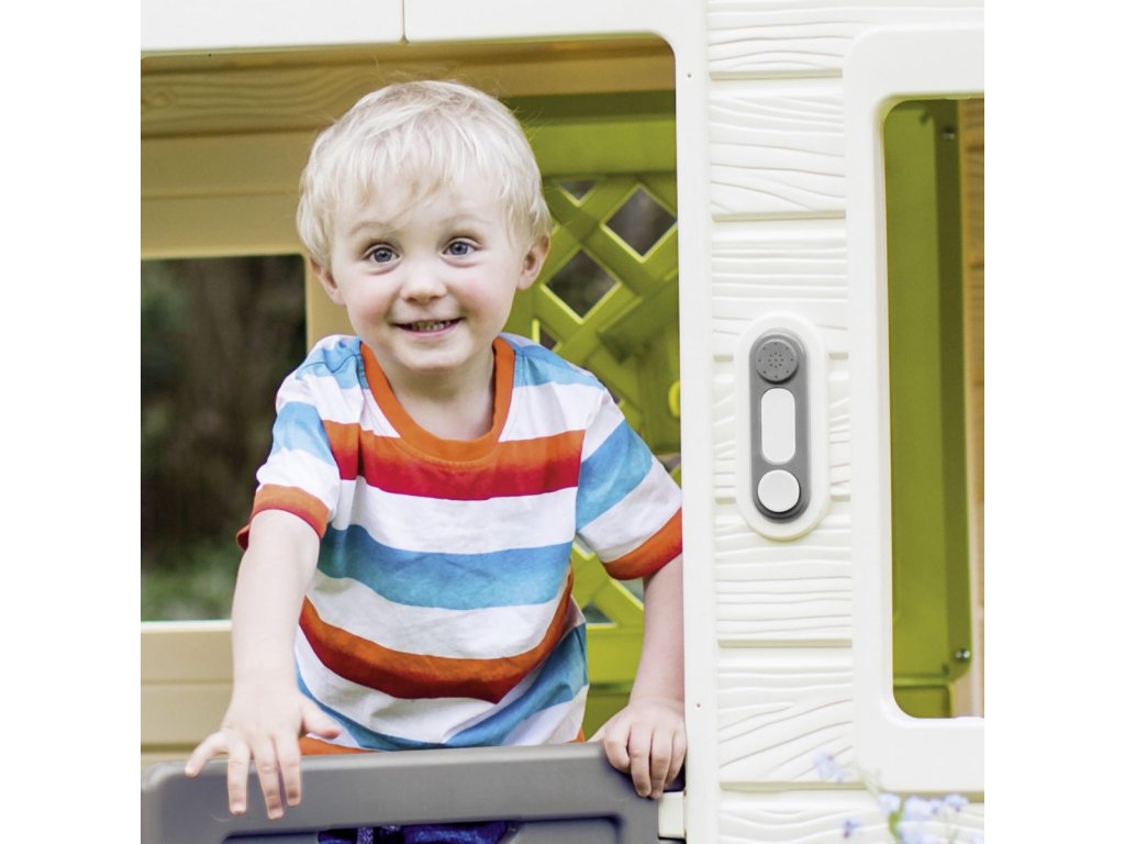 Elektronický zvonek se skutečným zvukem zvonku jako doplněk pro zahradní domečky Smoby: Pretty, Nature, domečky na podestě, Neo Jura Lodge rozšiřitelný, My Neo House rozšiřitelný, Neo Friends House rozšiřitelný, zahradnický rozšiřitelný a Chef rozšiřitelný. Rozměry zvonku (DxŠxV): 13 x 4 x 3 cm.