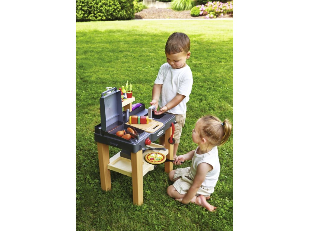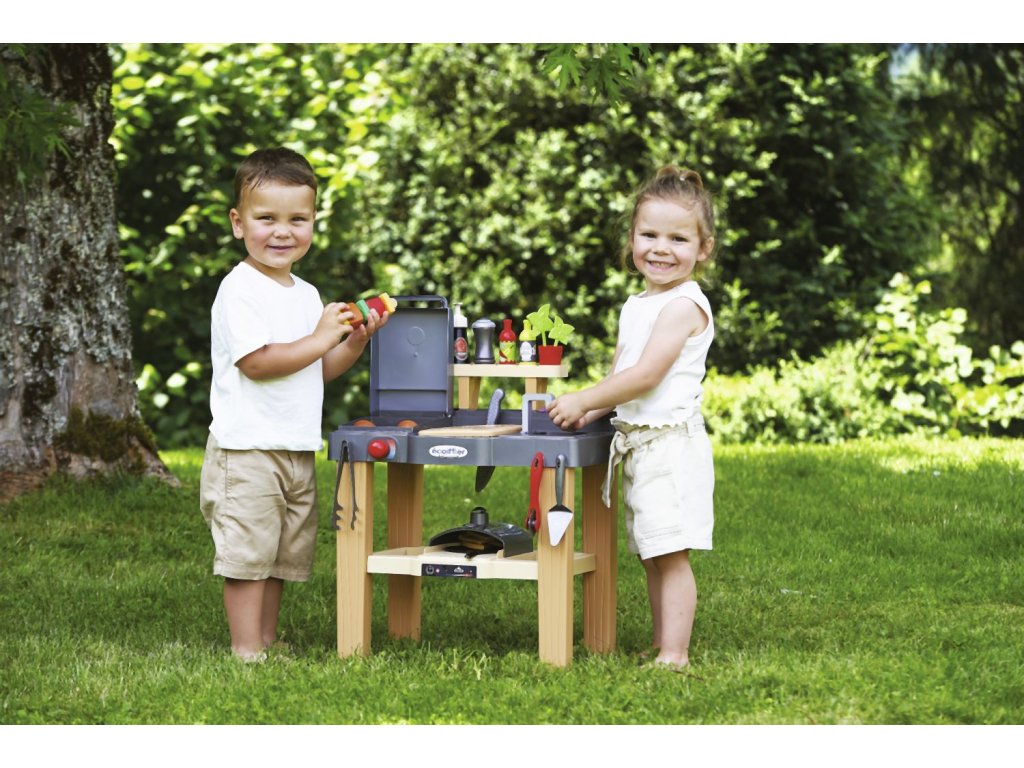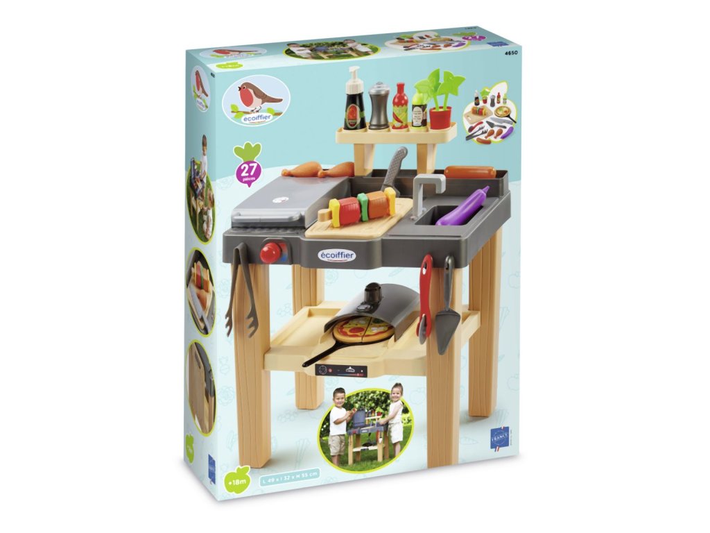 Letní zahradní kuchyňka s pecí na pizzu od Ecoiffier nabízí vše, co potřebují malí kuchaři. Tato kuchyně je vybavená pecí na pizzu, placha grilem, prkénkem a dřezem. Součástí je četné příslušenství a potraviny. Rozměry produktu (DxŠxV): 49 x 32 x 55 cm.