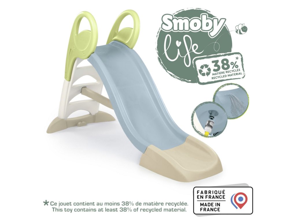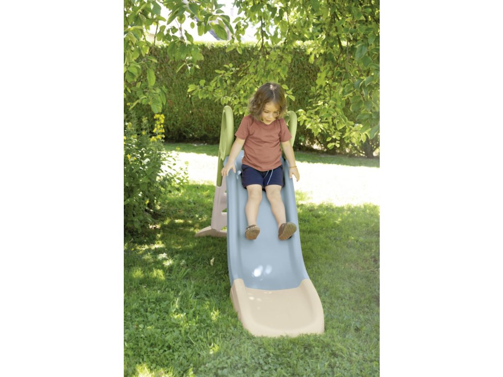 Plastová skluzavka s délkou skluzu 150 cm. Ke skluzavce je možno připojit hadici s vodou a vlhčit tak skluznou plochu pro snadnější a rychlejší klouzání. Tento výrobek obsahuje minimálně 38 % recyklovaného materiálu. Plastové díly jsou ošetřeny proti UV záření pro dobrou odolnost a delší trvanlivost barev v průběhu času.