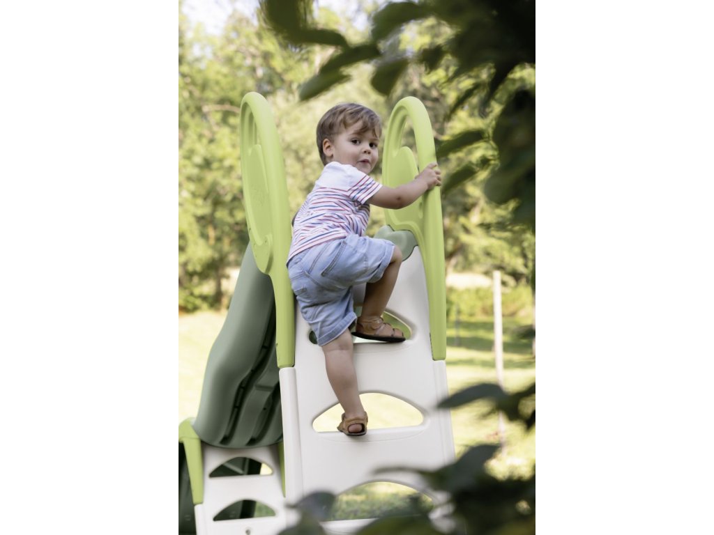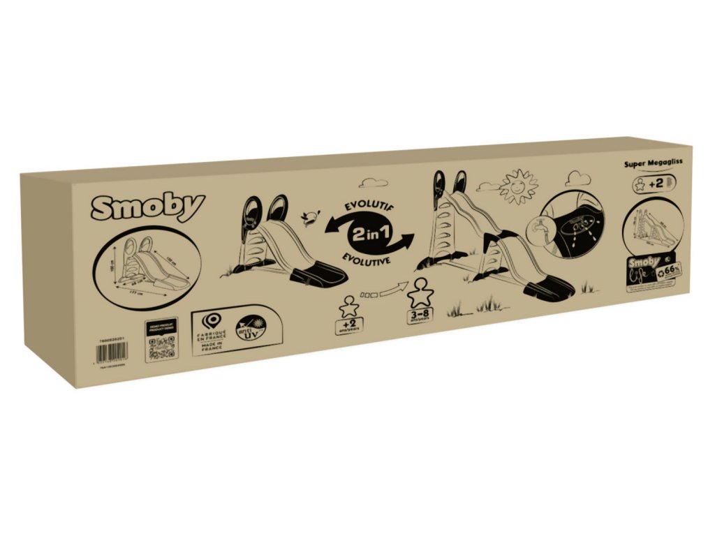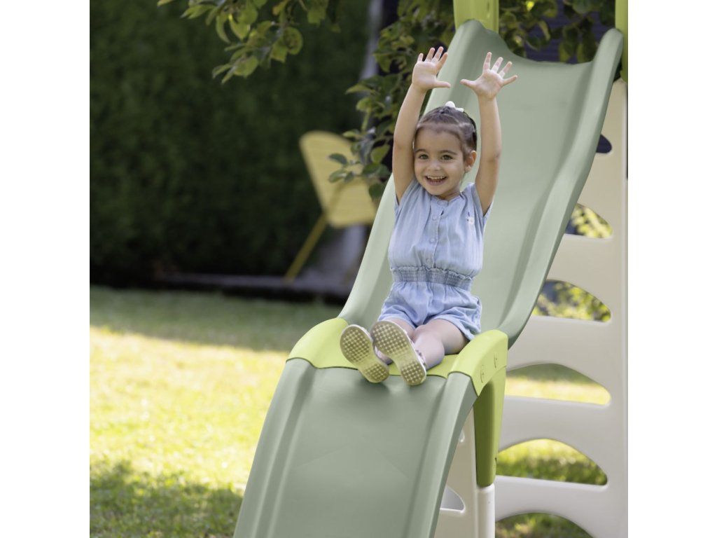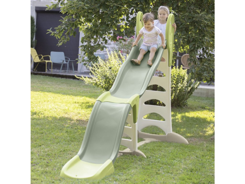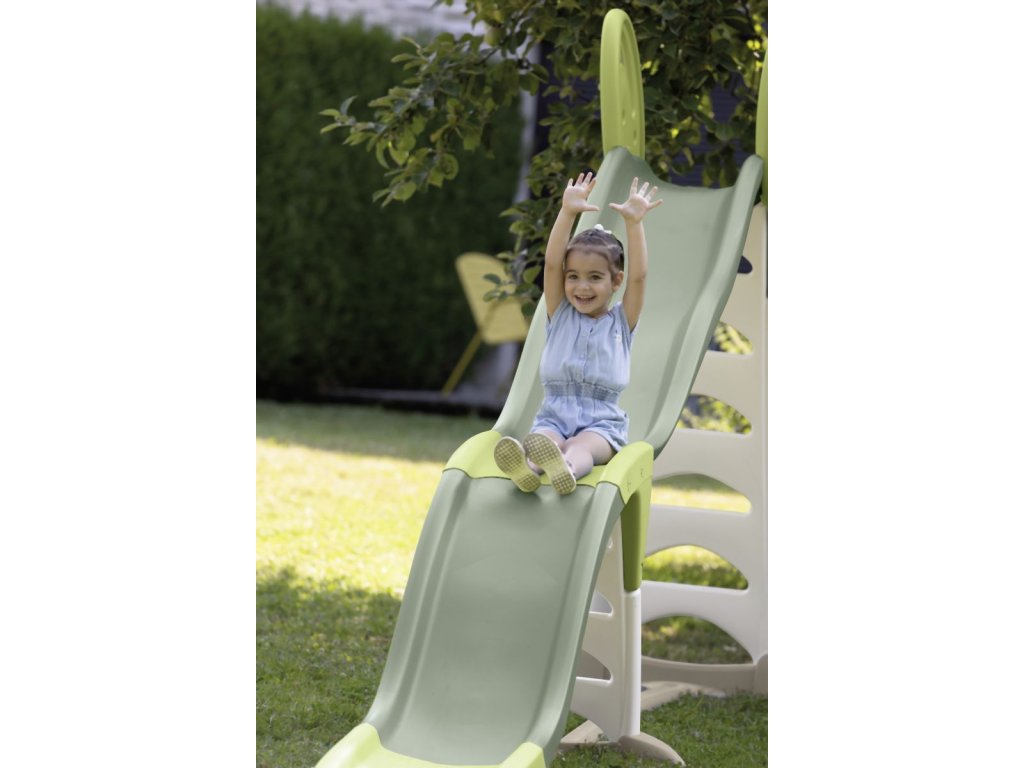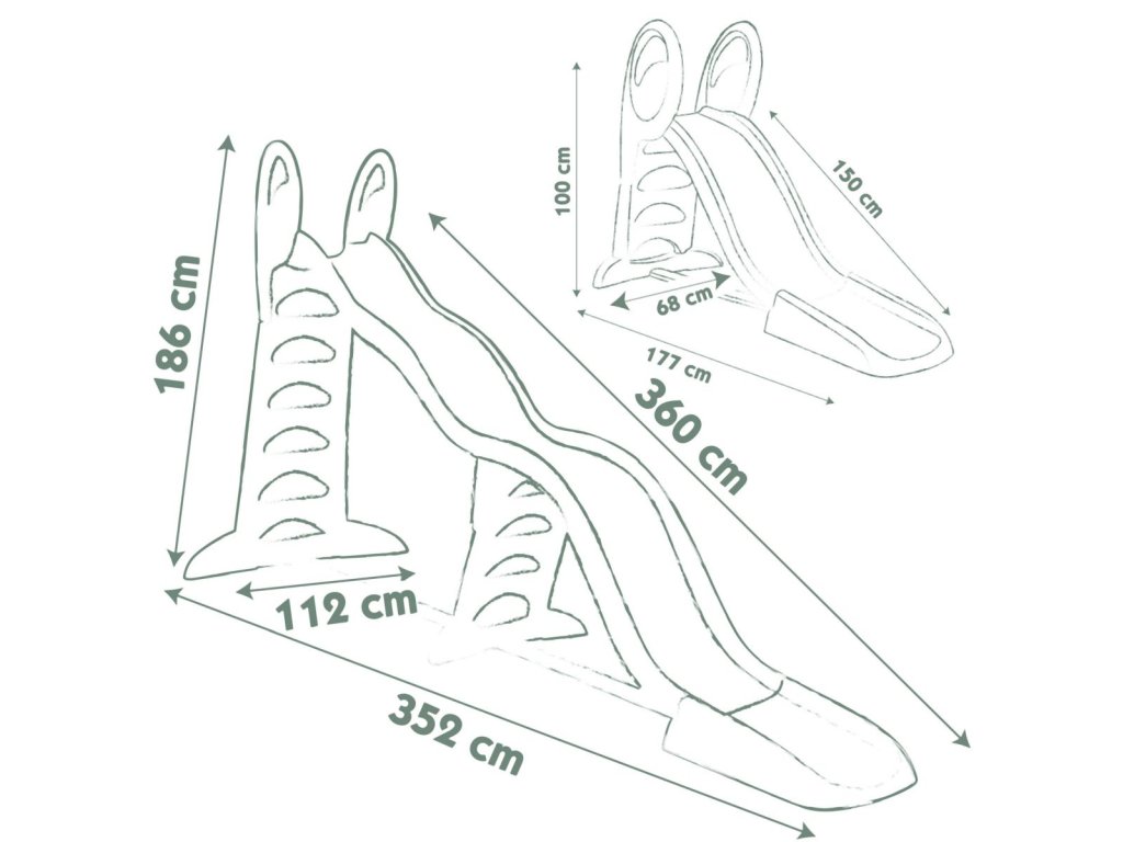 Trojitá zvlněná skluzavka Mega tobogán s délkou skluzavky: 3,6 m. Skluzavka je 2 v 1: roste s dětmi. Jednoduchá skluzavka pro batolata s délkou 1,70 m a poté možnost z ní udělat super 3 vlnnou skluzavku pro starší děti s délkou skluzu 3,60 m.Stabilita a bezpečnost jsou zajištěny díky extra široké základně a vyfukovanému žebříku s ergonomickými držadly. Protiskluzové schůdky.Plastové díly jsou ošetřeny anti-UV, což zajišťuje dobrou odolnost a stálost barev v průběhu času. Tento výrobek obsahuje minimálně 66% recyklovaného materiálu.
