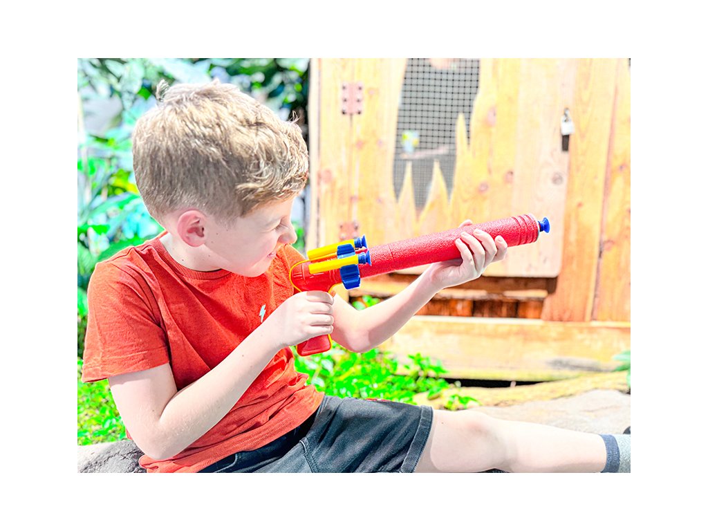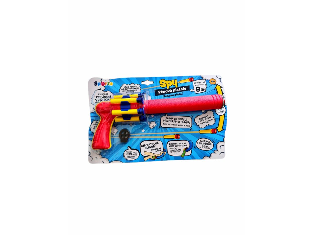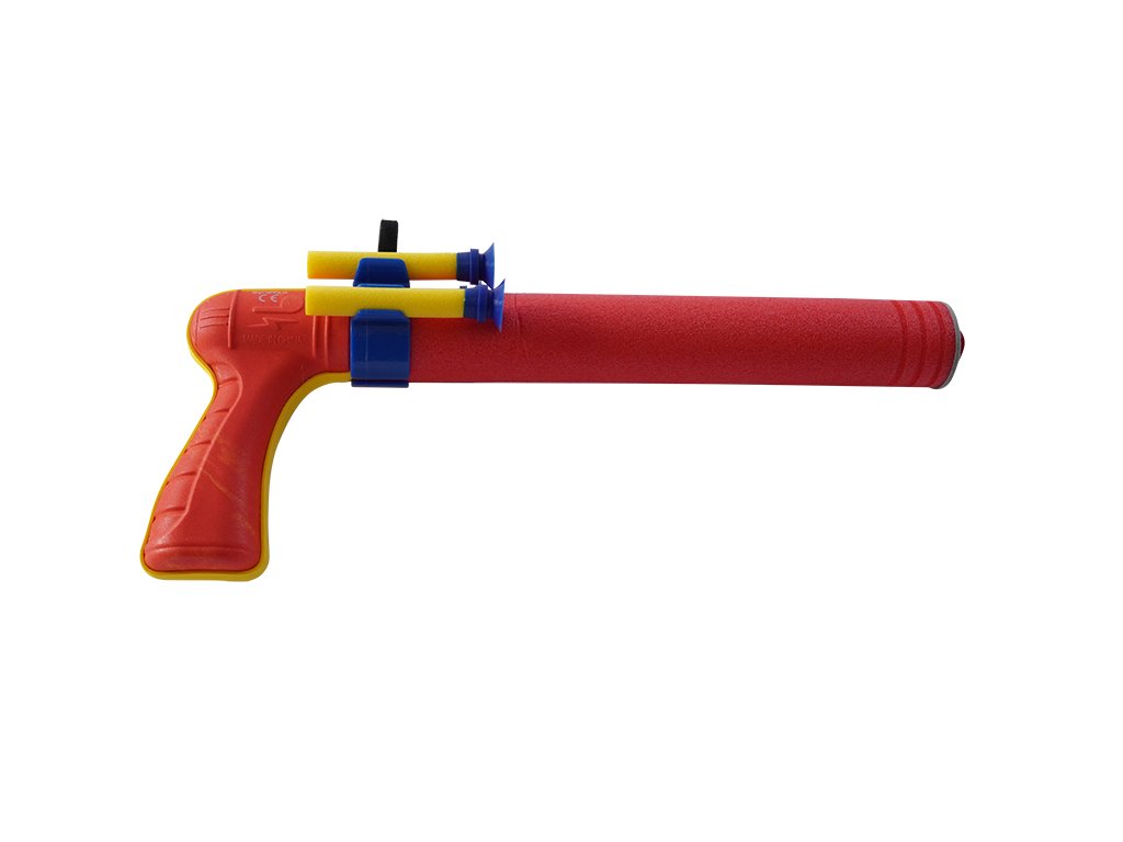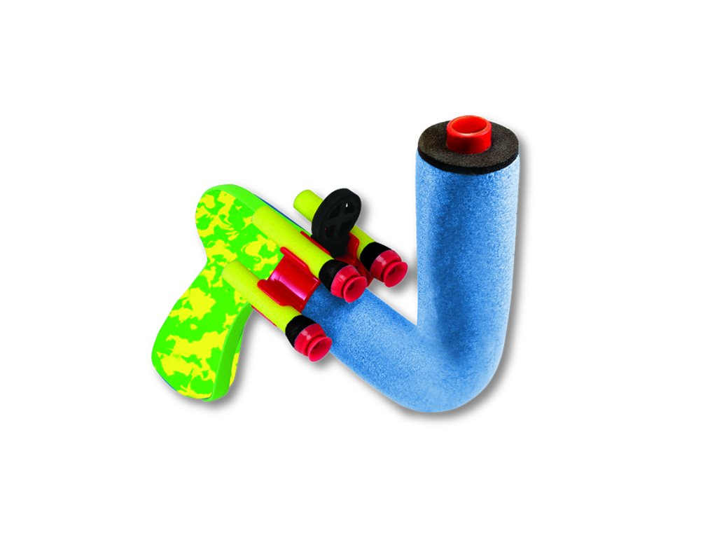Pděnová pistole na pěnové náboje poháněná vzduchem. Hlaveň lze ohnout (střelba za roh). Dostřel až 8 metrů. Přebaleno v CZ a SK obalu.