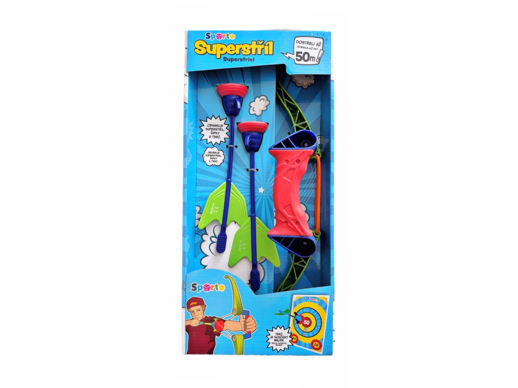 Superstří na pěnové šipky s přísavkou. Dostřel až 50 m. Včetně terče. Přebaleno v CZ a SK obalu.
