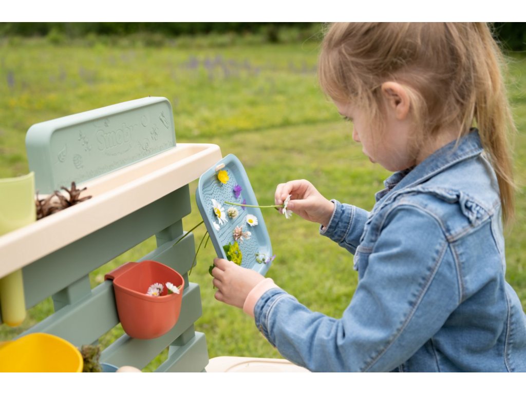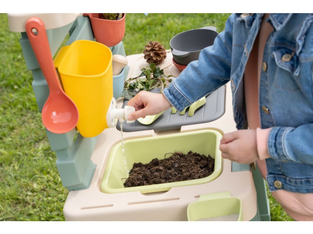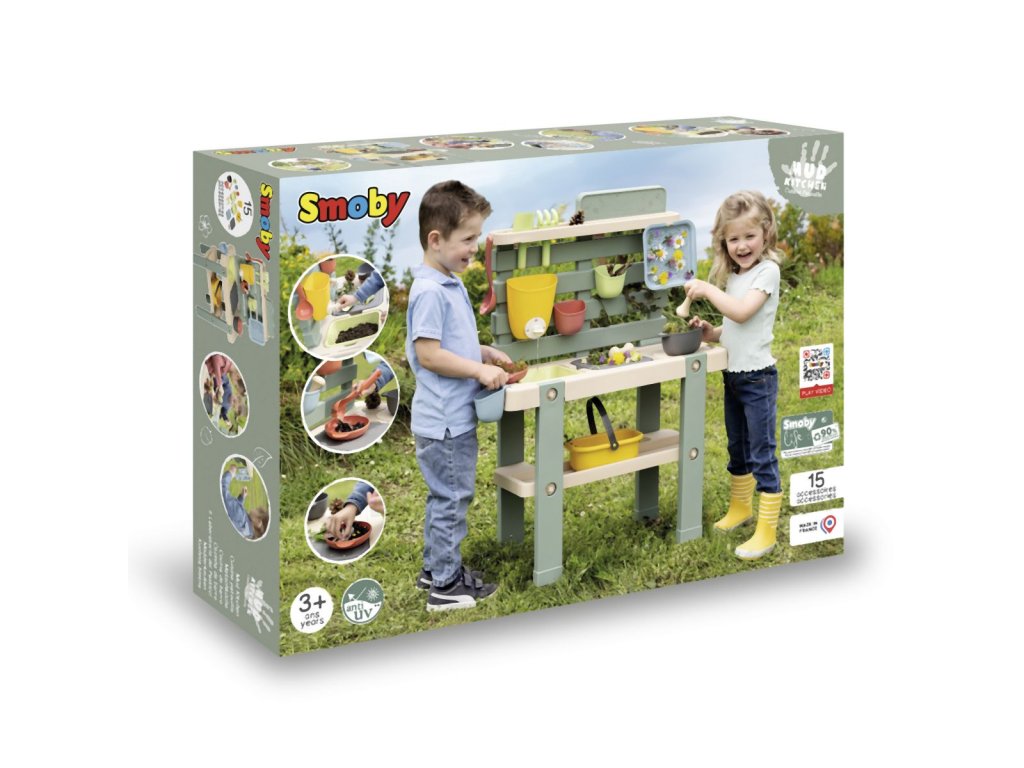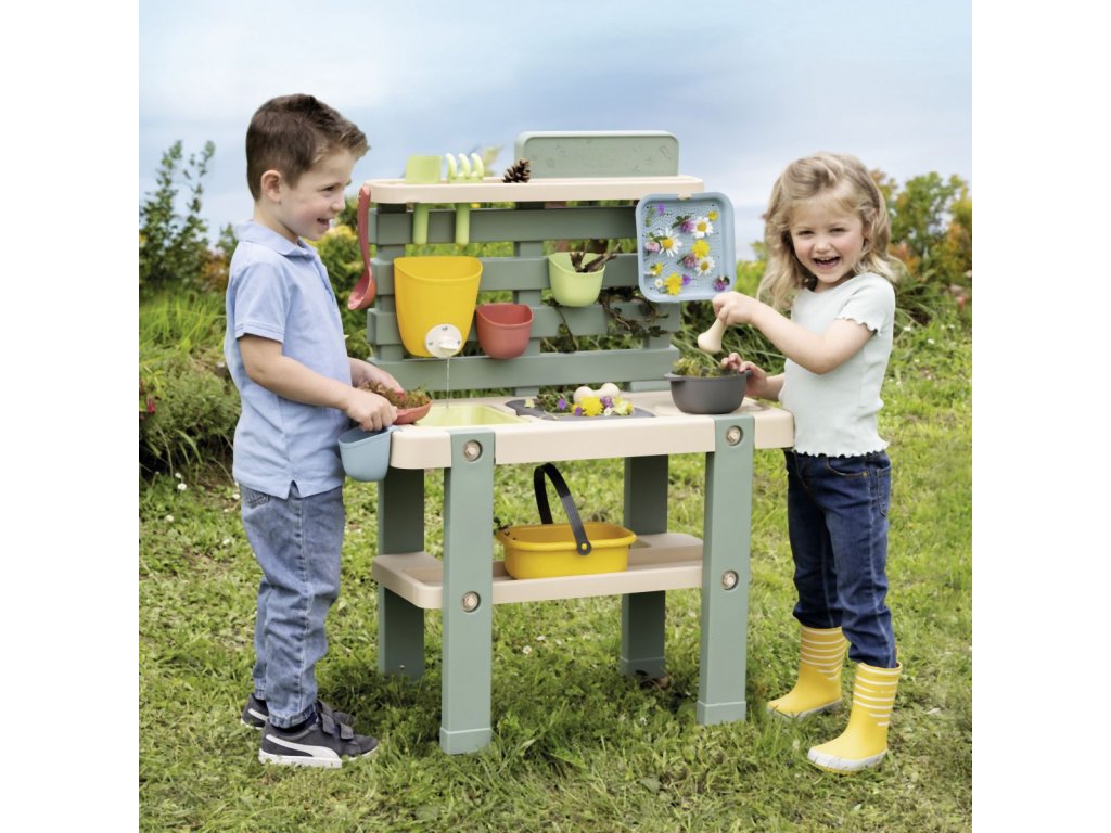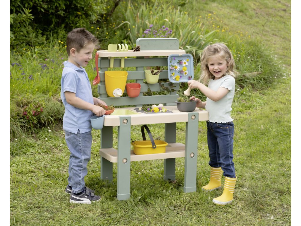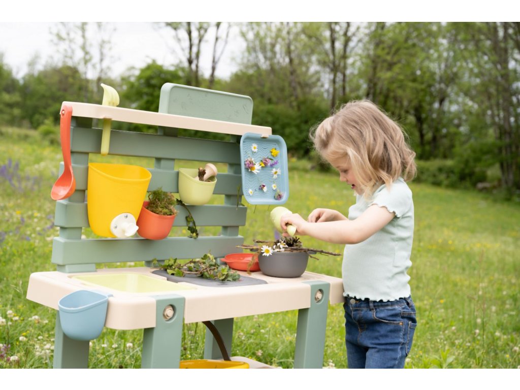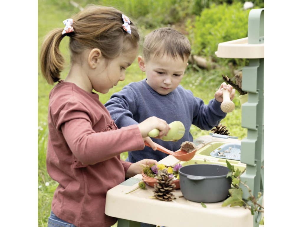 Venkovní kuchyňka vybavená různým příslušenstvím, celkem 15 ks doplňků. Plastové díly jsou ošetřeny anti-UV, což zajišťuje dobrou odolnost a stálost barev v průběhu času. Tento výrobek obsahuje minimálně 90% recyklovaného materiálu. Rozměry výrobku (DxŠxV): 72 x 36 x 99 cm.