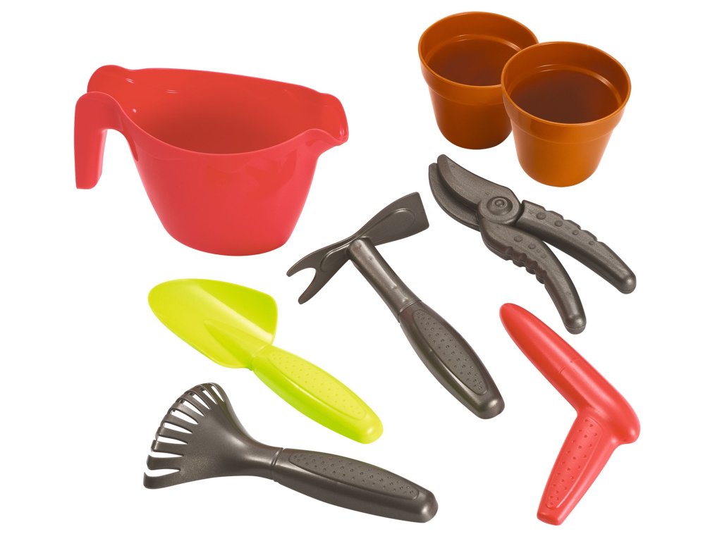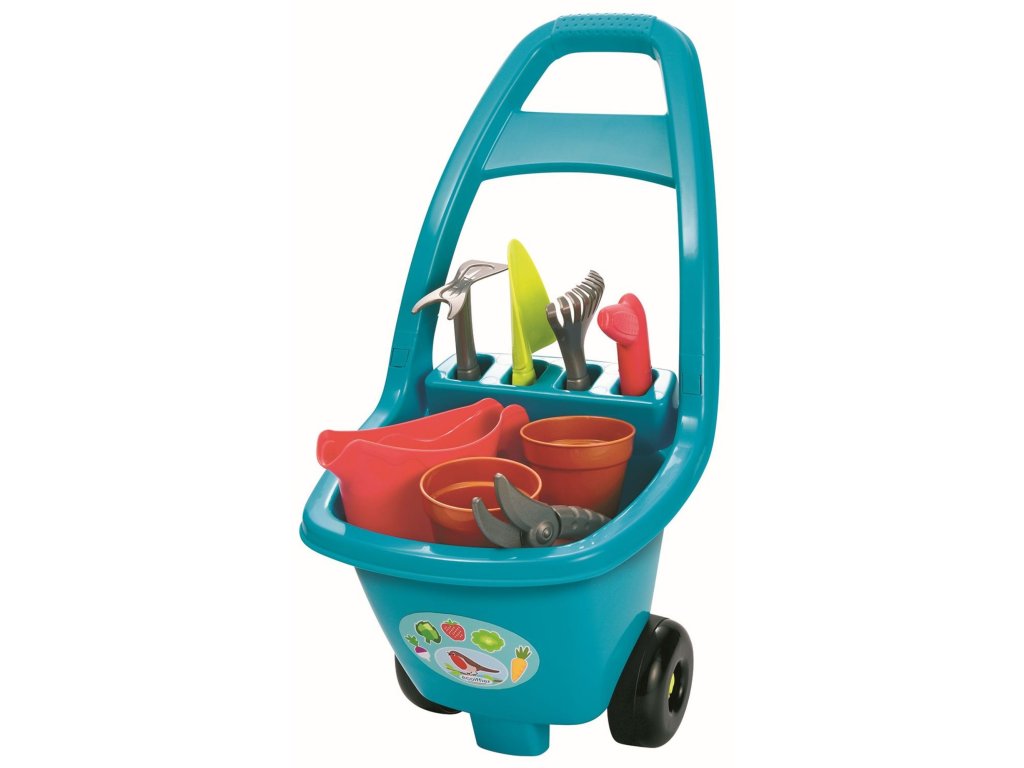 Zahradní vozík na kolečkách pro malé zahradníky obsahuje vše potřebné, např. květináče, konvičku, zahradní nářadí. Rozměry vozíku: 26 x 50,5 x 33 cm. Hmotnost: 0,58 kg.