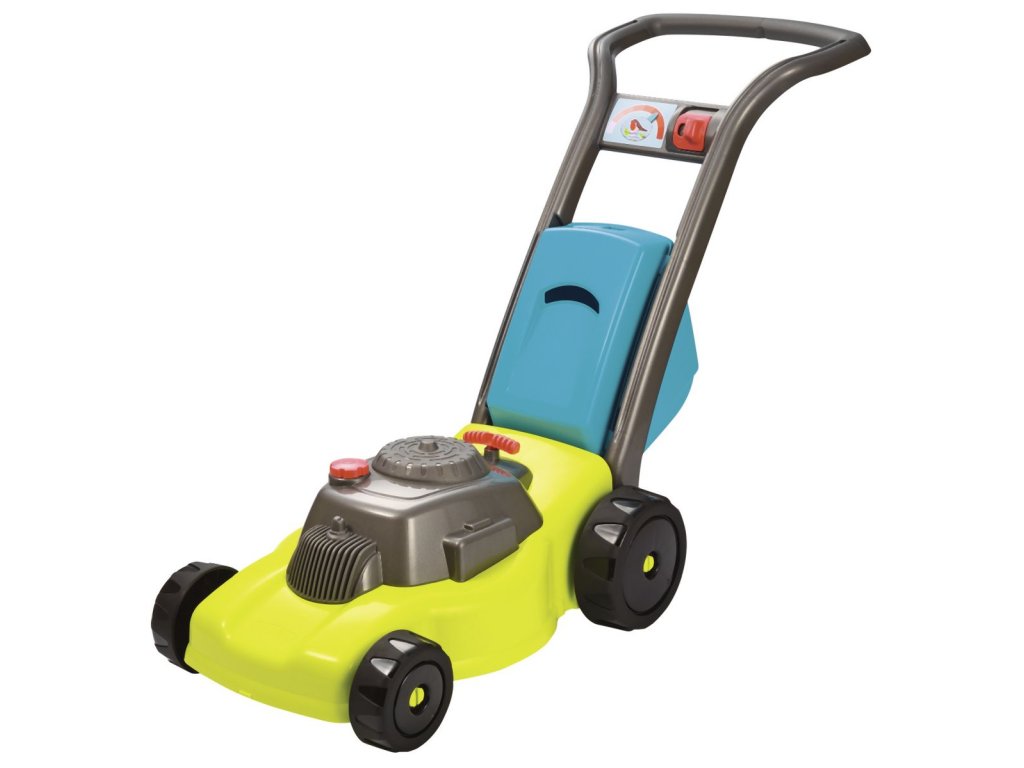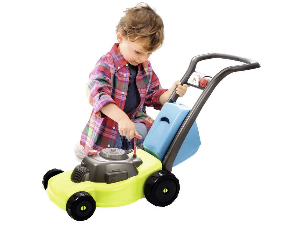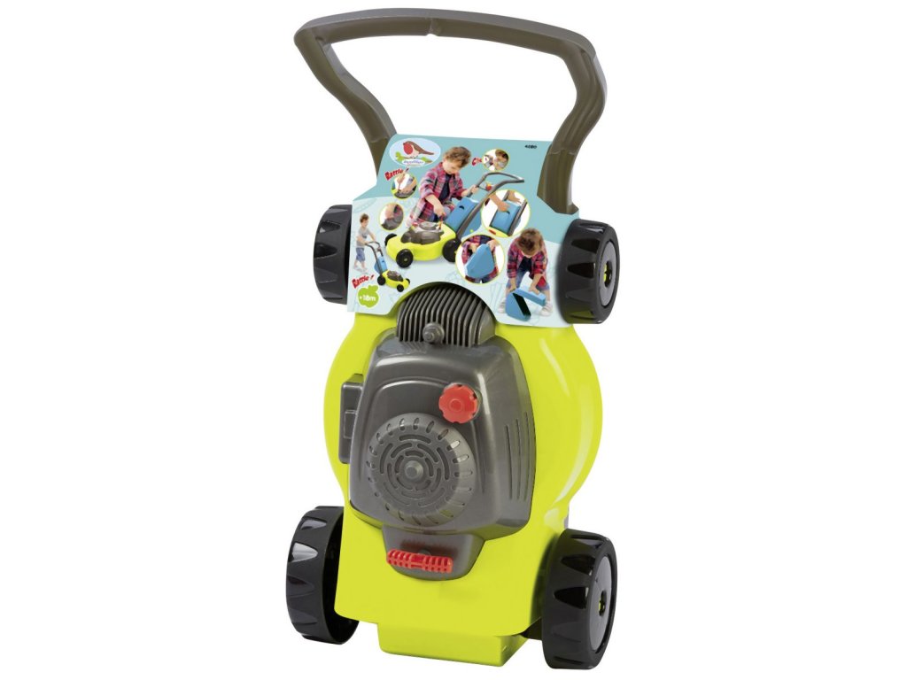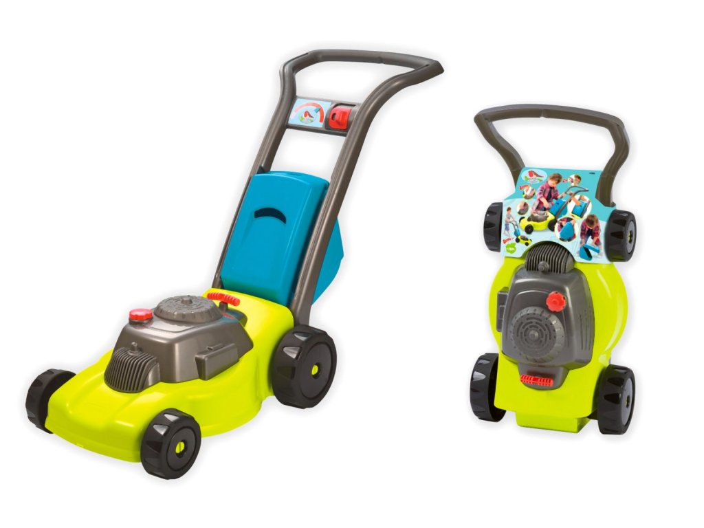 Zahradní sekačka s odnímatelným košem, s mechanickým chrastícím spouštěčem, s otočným víčkem benzínu a přepínačem rychlosti. Rozměry: 74 x 28,5 x 53,5 cm.