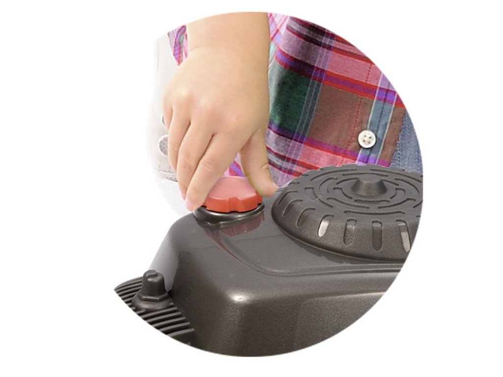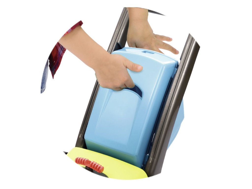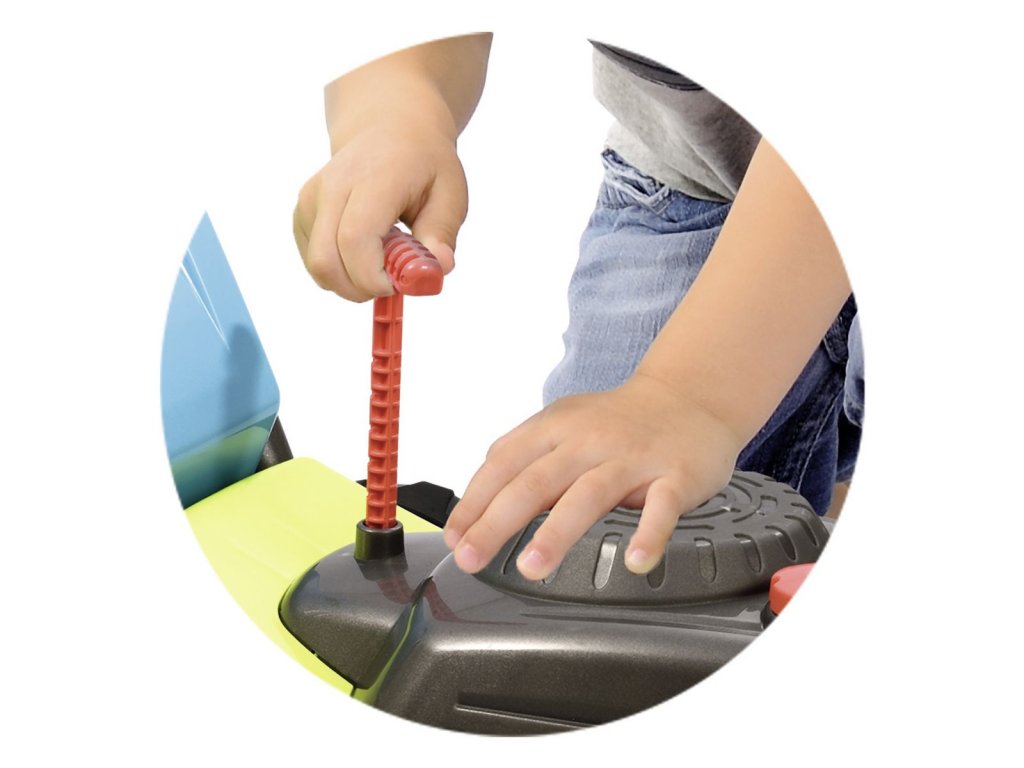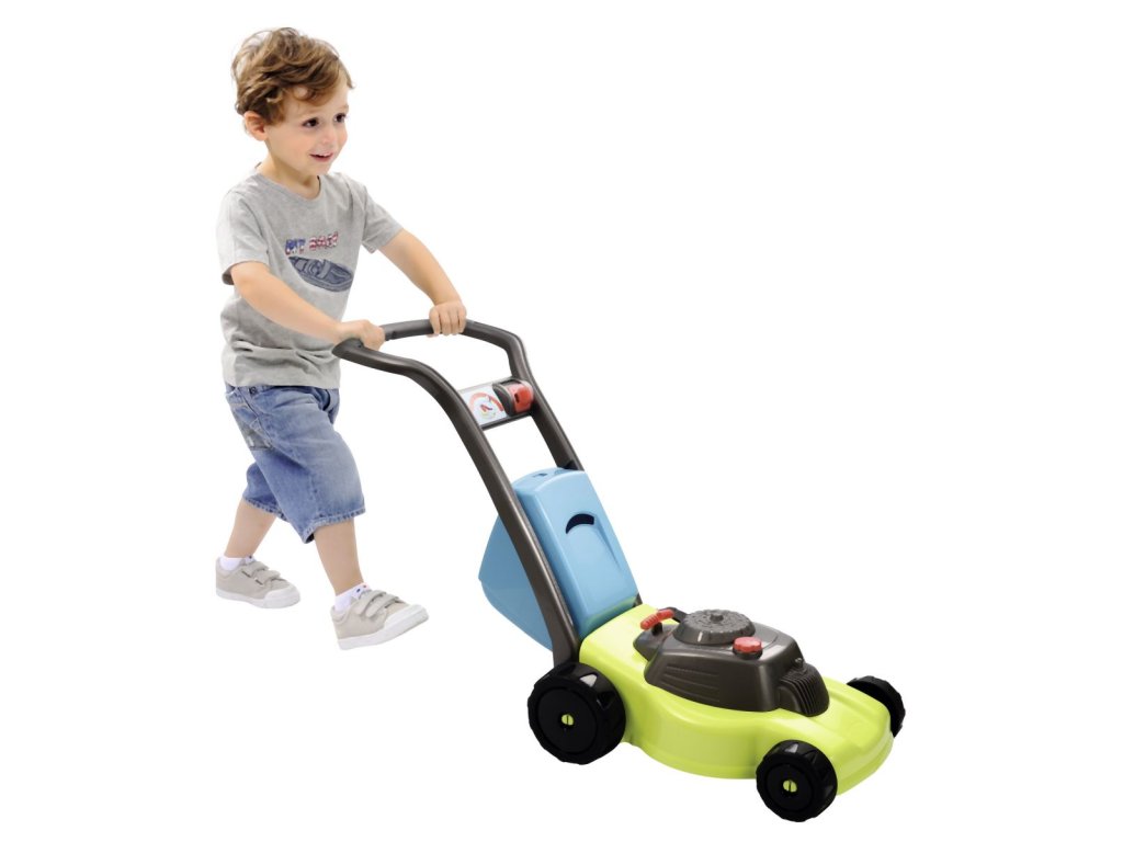Zahradní sekačka s odnímatelným košem, s mechanickým chrastícím spouštěčem, s otočným víčkem benzínu a přepínačem rychlosti. Rozměry: 74 x 28,5 x 53,5 cm.
