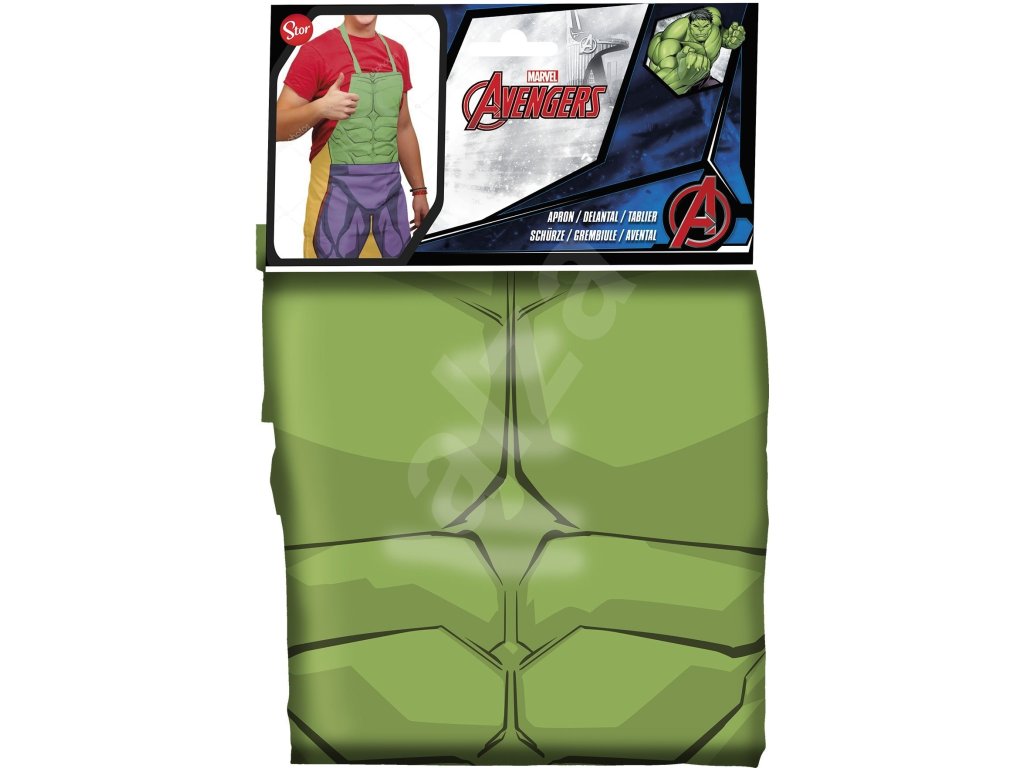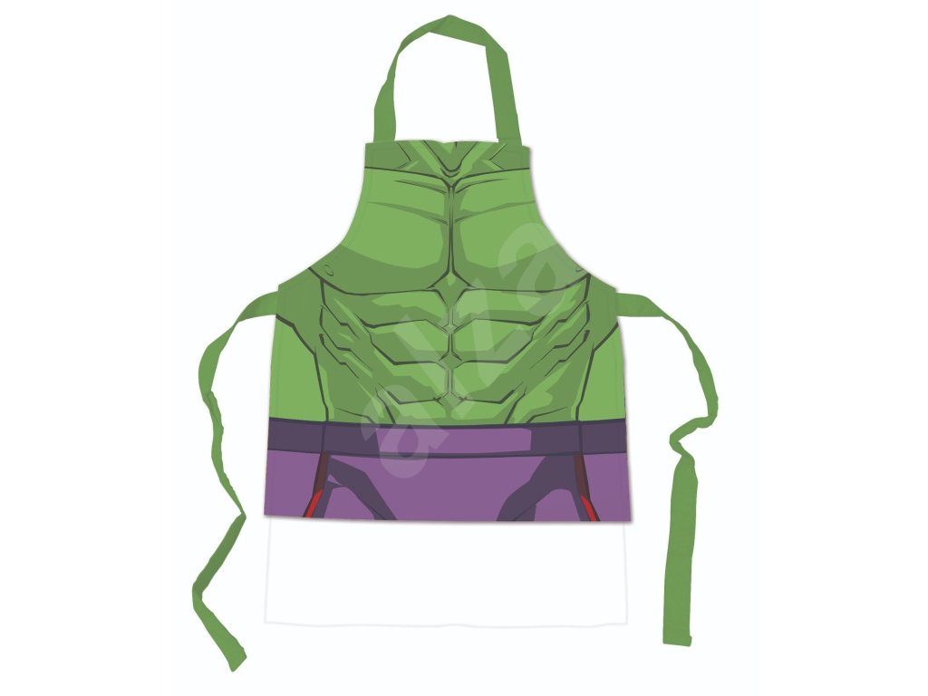 Oficiální kuchyňská zástěra z katalogu produktů s licencí komiskového studia DC Comics a superhrdinou Hulk.