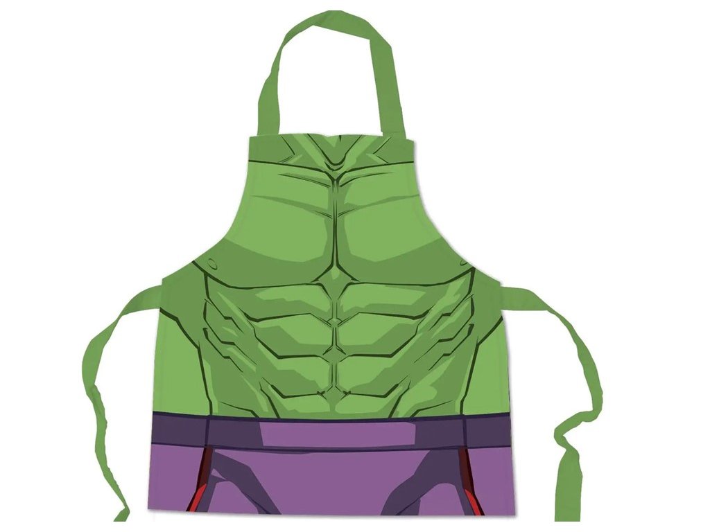 Kuchyňská zástěra s svalnatého těla komiksové postavy Hulk.