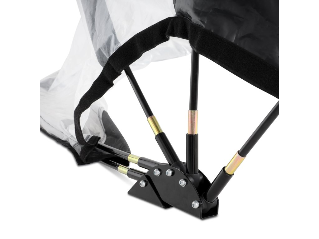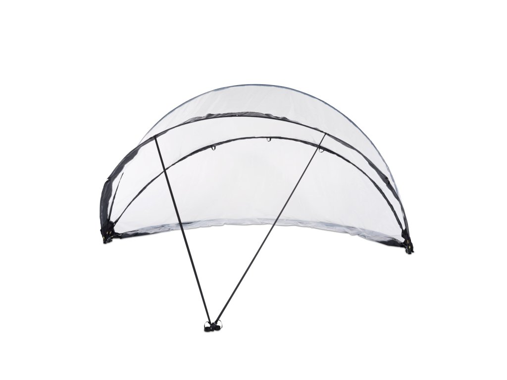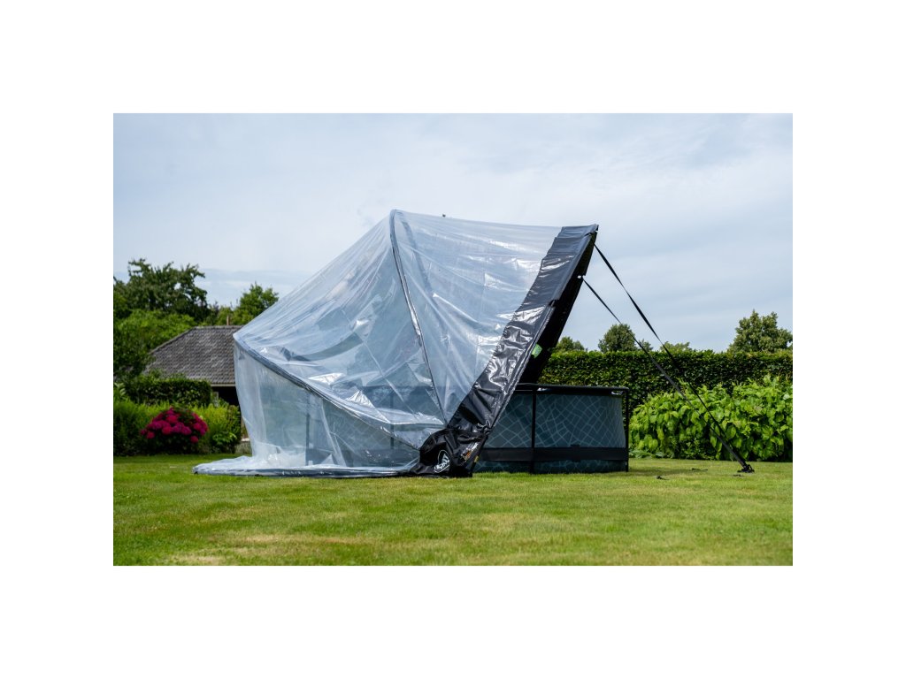 Zastřešení lze rychle a snadno postavit ve dvou lidech. Po instalaci můžete kryt snadno zavřít, nebo nechat v polootevřené poloze díky nastavitelným popruhům.
