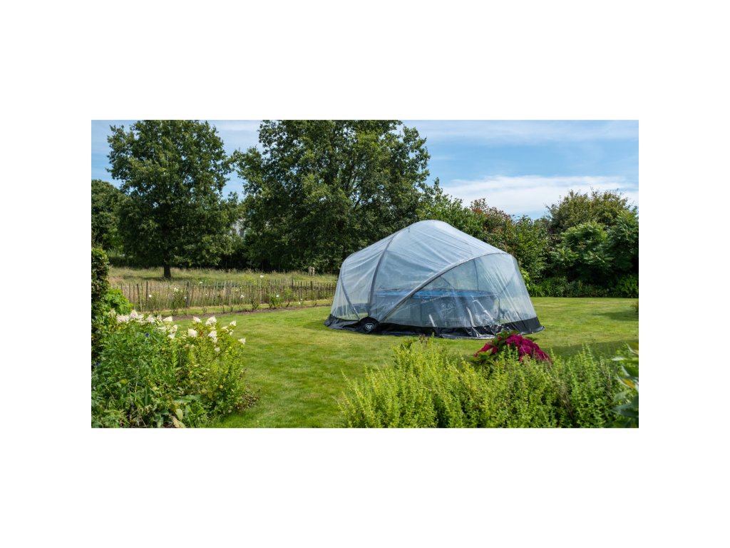 Díky výšce 242cm se do zastřešení bazénu jednoduše postavíte a je zde dostatek místa na házení míčem. Zastřešení je velmi robustní, díky pevným sklolaminátovým prutům a kovovým křídlovým závěsům drží na svém místě i při silnějším větru.