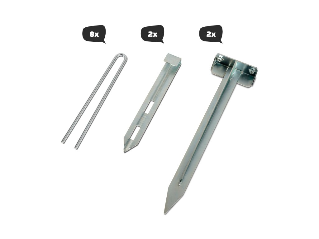 Pro upevnění do měkkého povrchu jsou součástí dodávky zemní kotvy. Pomocí vlastního uchycení je možno kryt instalovat jak na dřevěnou, tak na betonovou podlahu.