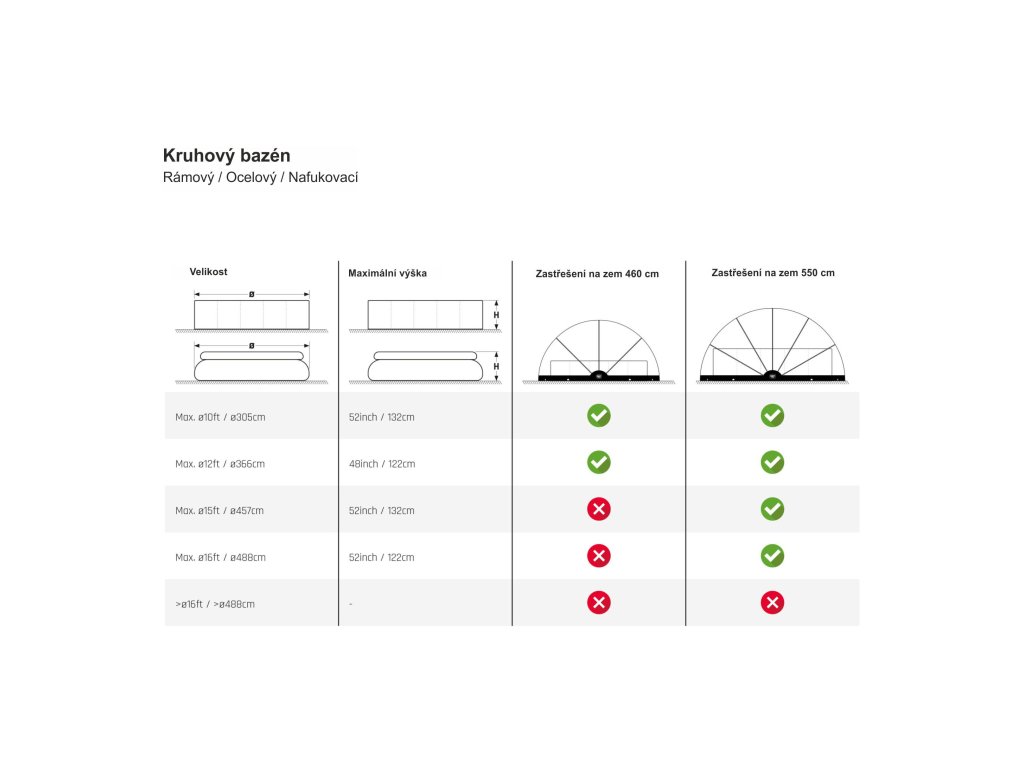 Zastřešení Exit 550 cm na zem je vhodné pro mnoho nadzemních bazénů, tak i pro zapuštěné bazény.