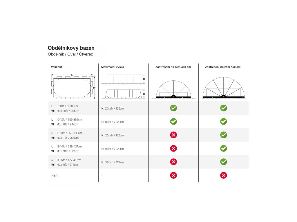 zastřešení je primárně určeno pro zakrytí většiny druhů bazénu, ale je možno ho využít také pro zakrytí vířivky, zahradního nábytku, nebo z něj můžete vytvořit skleník.