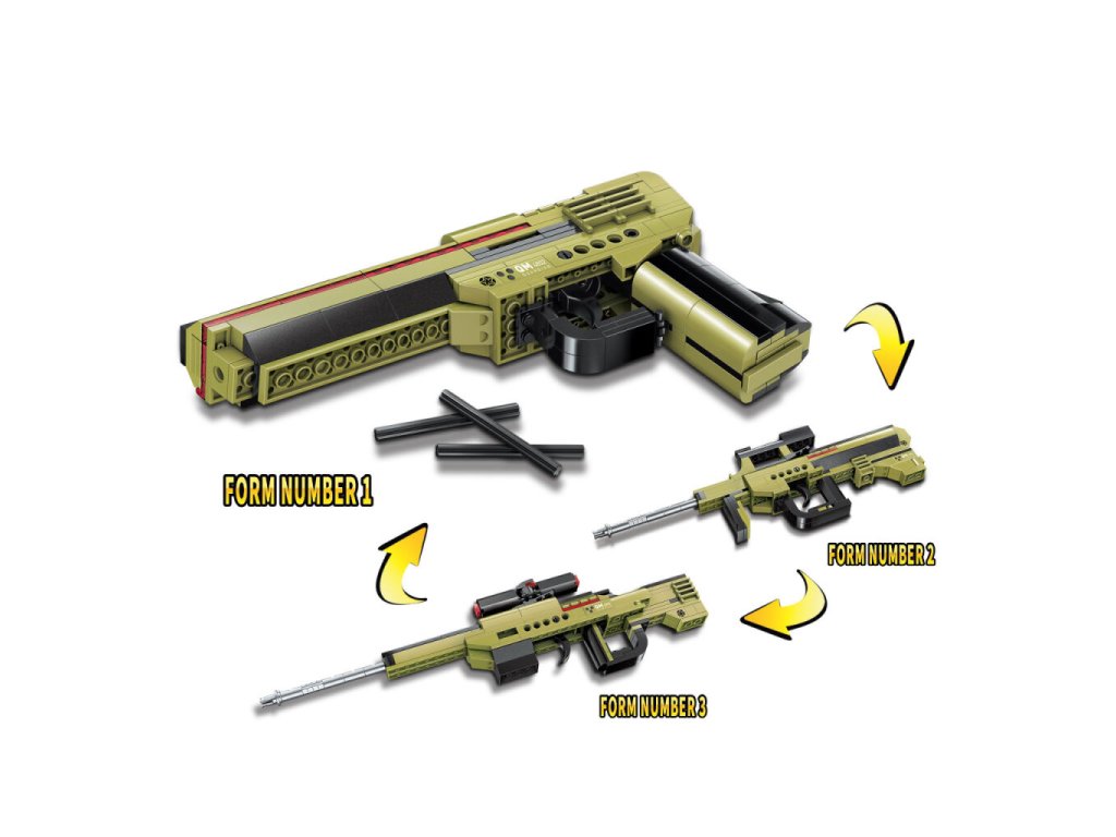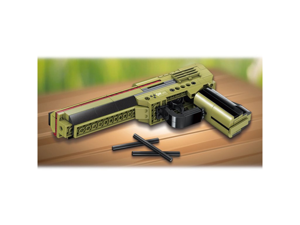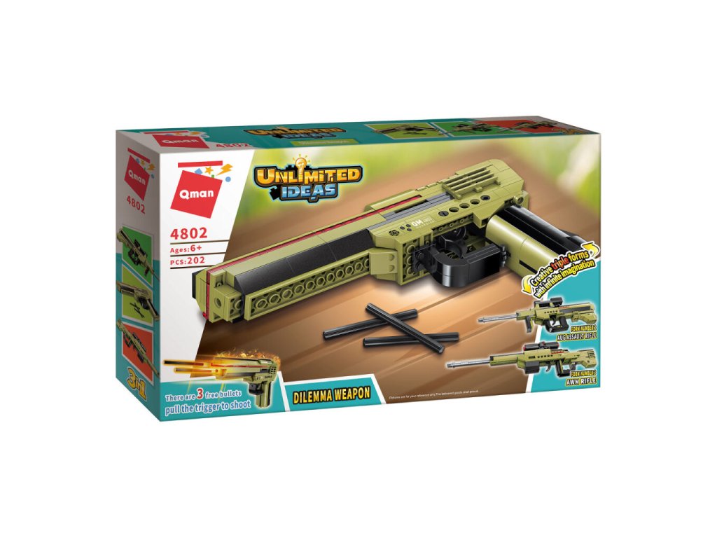 Stavějte a přestavujte! Tři zbraně v jedné snadno přizpůsobíte situaci. Můžete vládnout pistolí, útočnou, nebo odstřelovací puškou. Sestavená zbraň není jen na ozdobu, je vybavena šipkami, se kterými lze cvičit střelbu! Vysoce variabilní stavebnice Qman z pestrobarevných plastových kostiček lze kombinovat s podobnými stavebnicemi mnoha dalších významných výrobců. Vyrobeno z kvalitního, nezávadného a odolného, ABS plastu. Baleno v pestře potištěné papírové krabičce. Hlavní vlastnosti:• 142 dílků• 3 varianty sestavení• střílí, vybaveno 3 šipkami• kompatibilní se stavebnicemi dalších výrobců