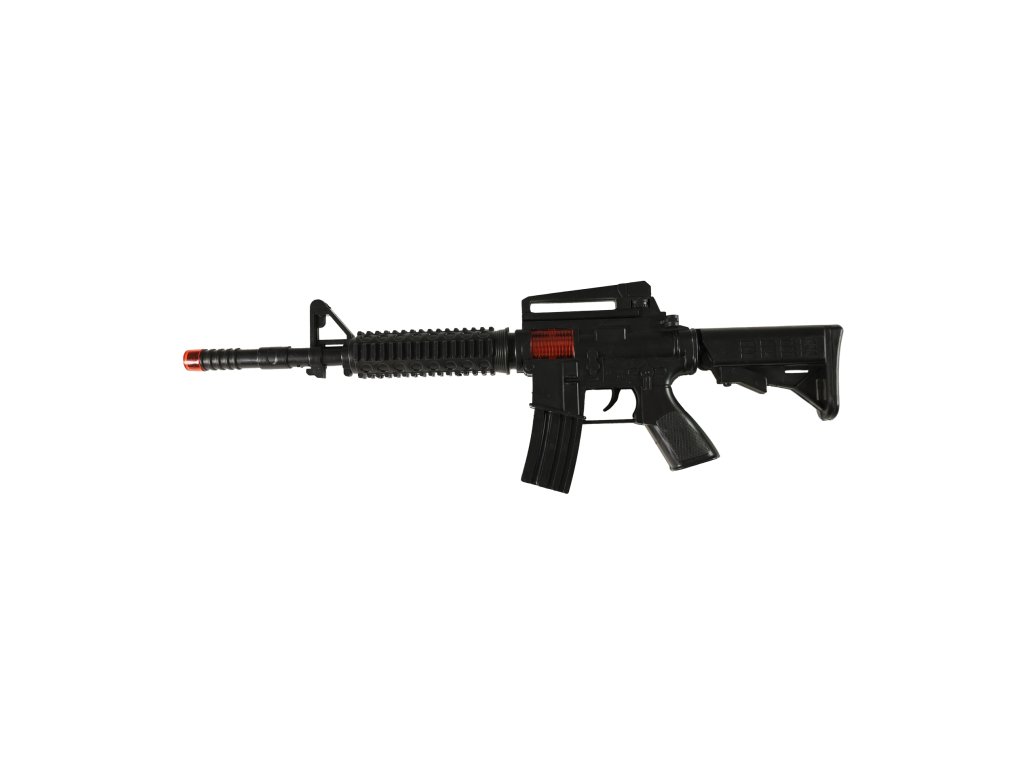Dětský samopal o délce 45 cm je skvělou volbou pro každého malého fanouška akčních bojových her! Díky mechanickému mačkání spouště vydává realistické zvuky a při střelbě jiskří.