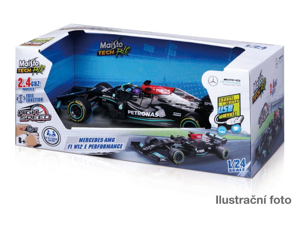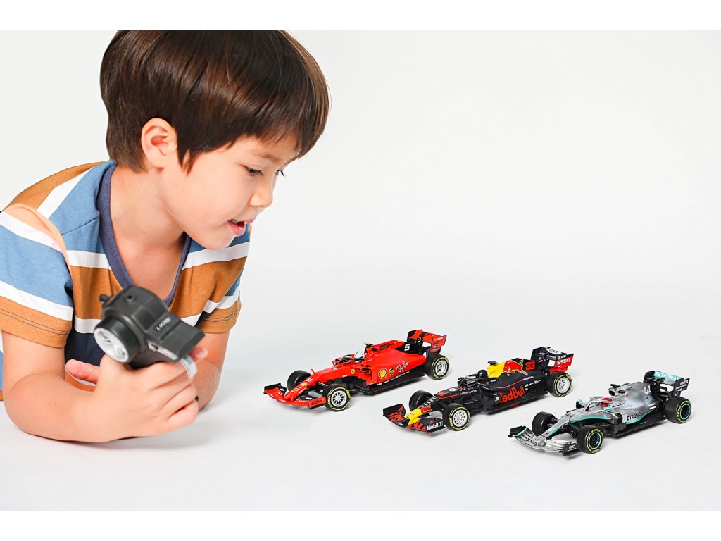 Tech RC, Racing Series. RC modely závodních formulí. Variaty: RC model 2021 Mercedes-AMG F1 - Lewis Hamilton, Frekvence: 2,4 GHz, závodit lze až se 4 modely najednou,baterie jsou součástí balení, vozidlo - vestavěná akumulátorová baterie - nabíjení přes USB kabel, ovladač-2ks 1,5V AAA, dosah vysílače-cca 35 metrů, doba jízdy-20 minut, rychlost-7,9 km/h, délka modelu cca 20 cm. No.5 Sebastian Vettel, No.16 Charles Leclerc. Frekvence: 2,4 GHz, závodit lze až se 4 modely najednou,baterie jsou součástí balení, vozidlo - vestavěná akumulátorová baterie - nabíjení přes USB kabel, ovladač-2ks 1,5V AAA, dosah vysílače-cca 35 metrů, doba jízdy-20 minut, rychlost-7,9 km/h, délka modelu cca 20 cm. Max Verstappen - Frekvence: 2,4 GHz, závodit lze až se 4 modely najednou, baterie jsou součástí balení, vozidlo - vestavěná akumulátorová baterie - nabíjení přes USB kabel, ovladač-2ks 1,5V AAA, dosah vysílače-cca 35 metrů, doba jízdy-20 minut, rychlost-7,9 km/h, délka modelu cca 20 cm. Nevhodné pro děti do 3 let. Assort je náhodný mix modelů. Výběr nelze ovlivnit. Věk: 8+