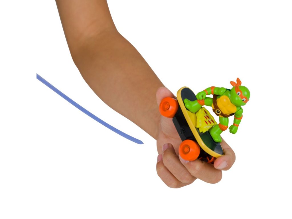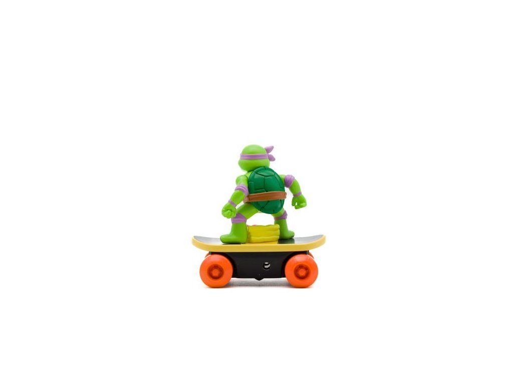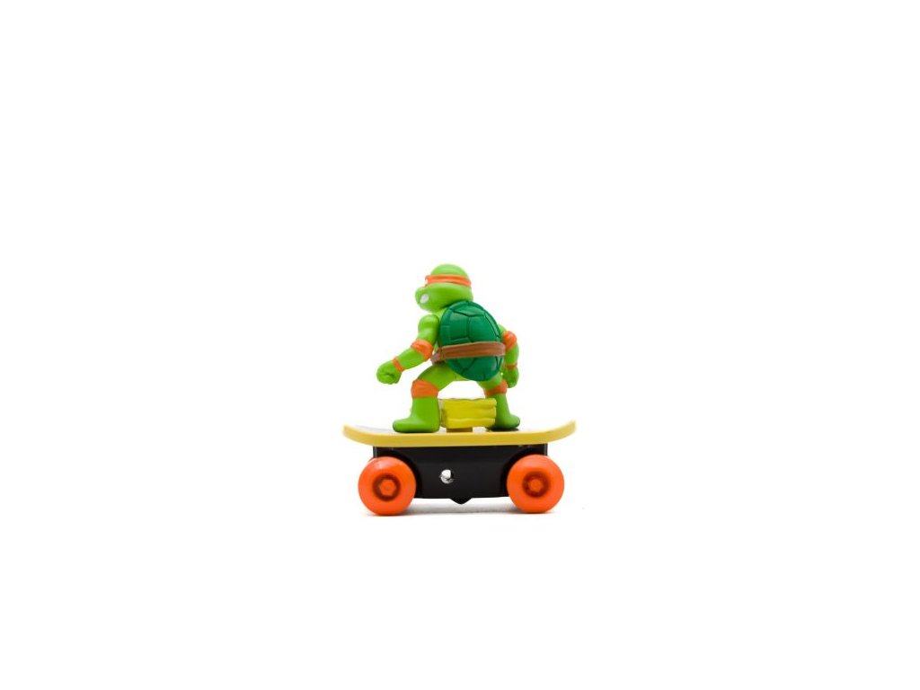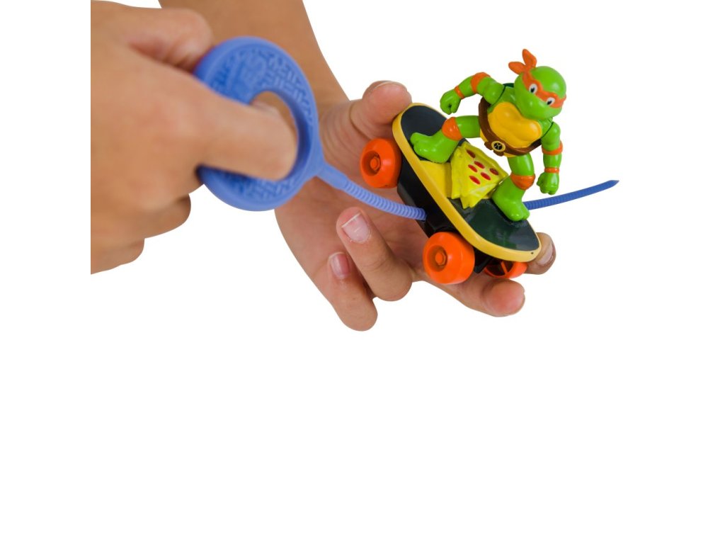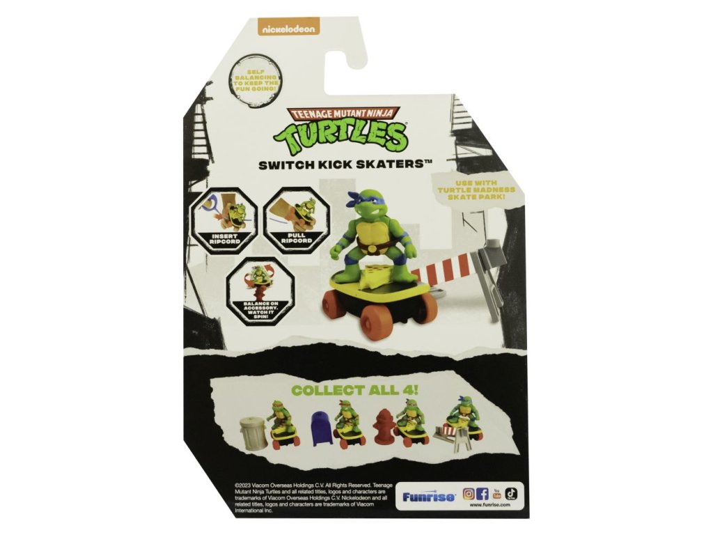 Teenage Mutant Ninja Turtles Switch Kick Skaters je auto-stabilizační skateboard, který vám umožní předvádět skvělé skate triky a pokaždé přistát na všech čtyřech kolech. Auto-stabilizační mechanismus (gyro) uvnitř skateboardu je napájen natahovacím lankem. Stačí zasunout natahovací lanko do skateboardu, vytáhnout a můžete začít provádět ty nejlepší triky s želvami Ninja. Nasbírejte všechny 4 postavy! Vhodné pro děti od 4 let.