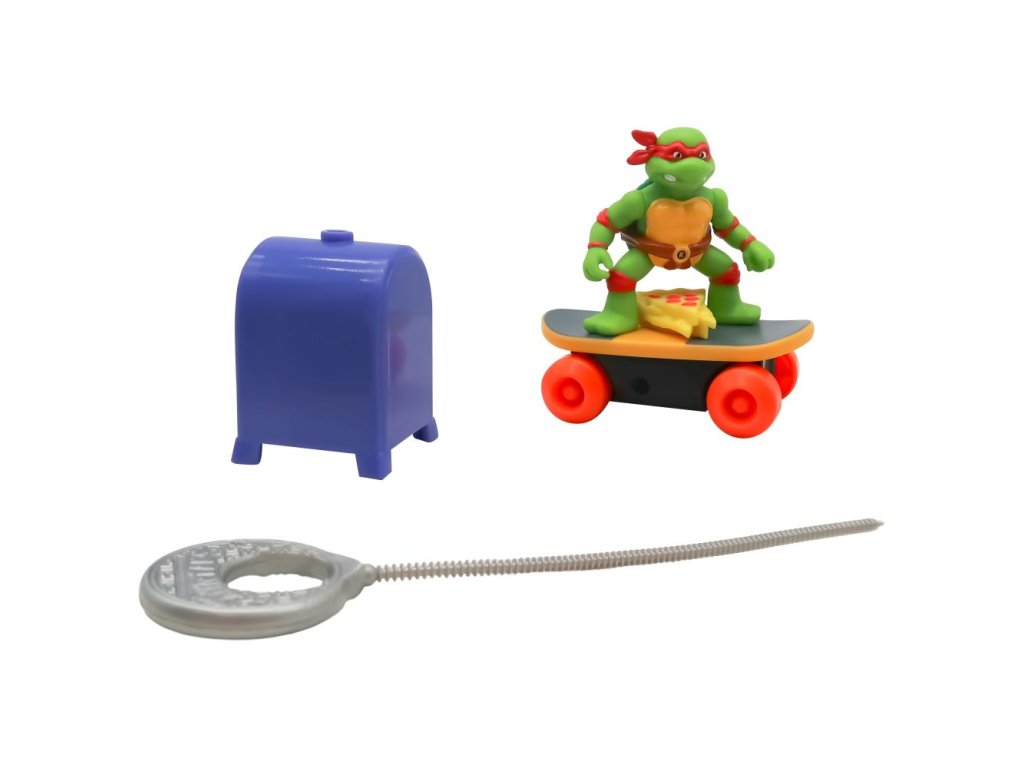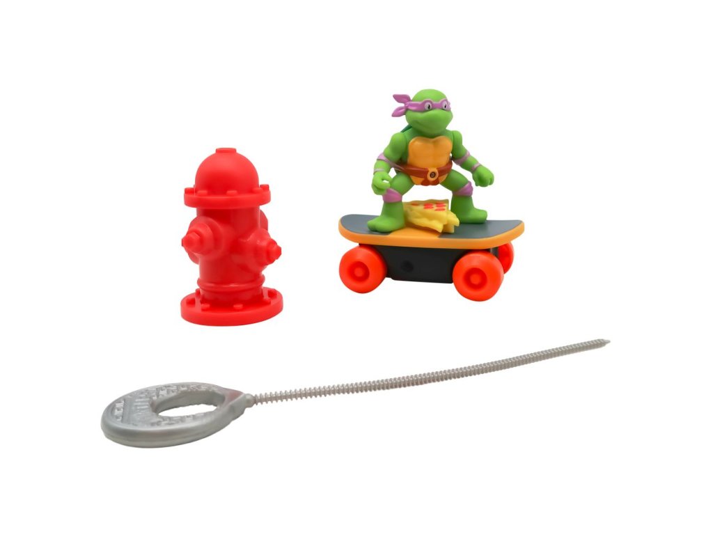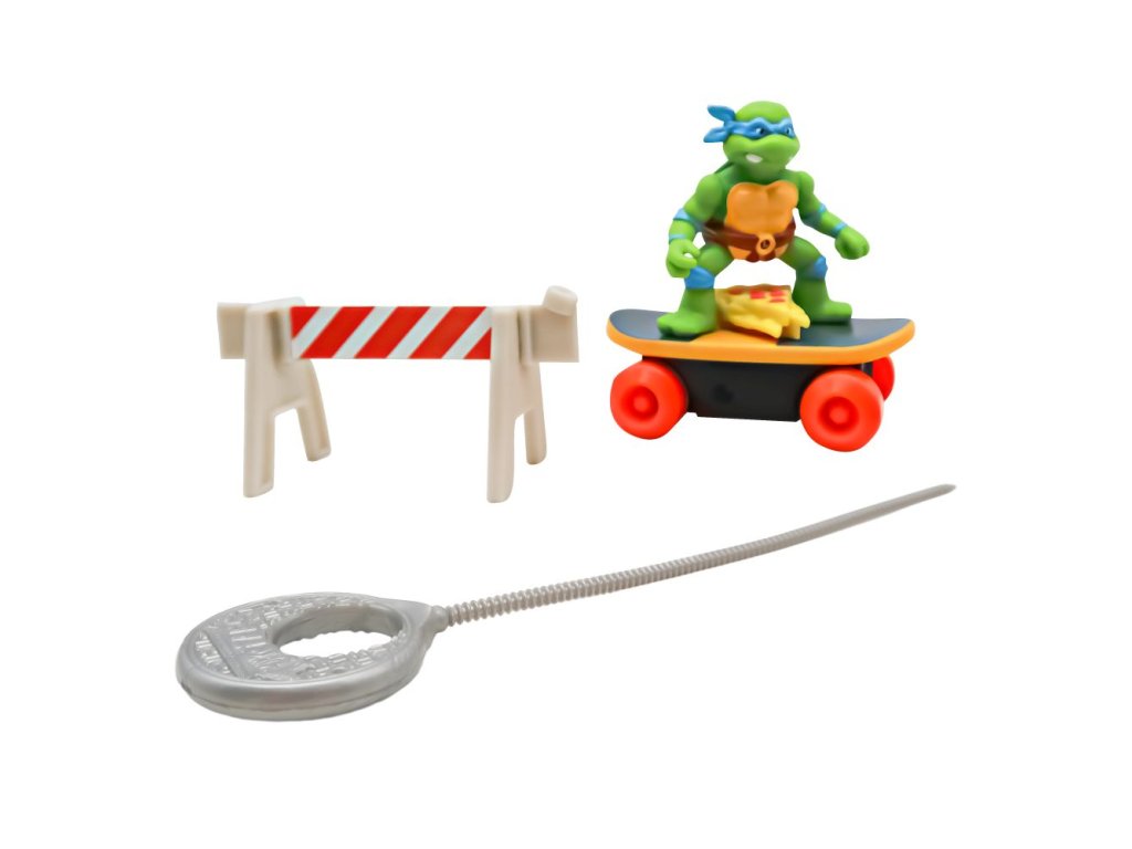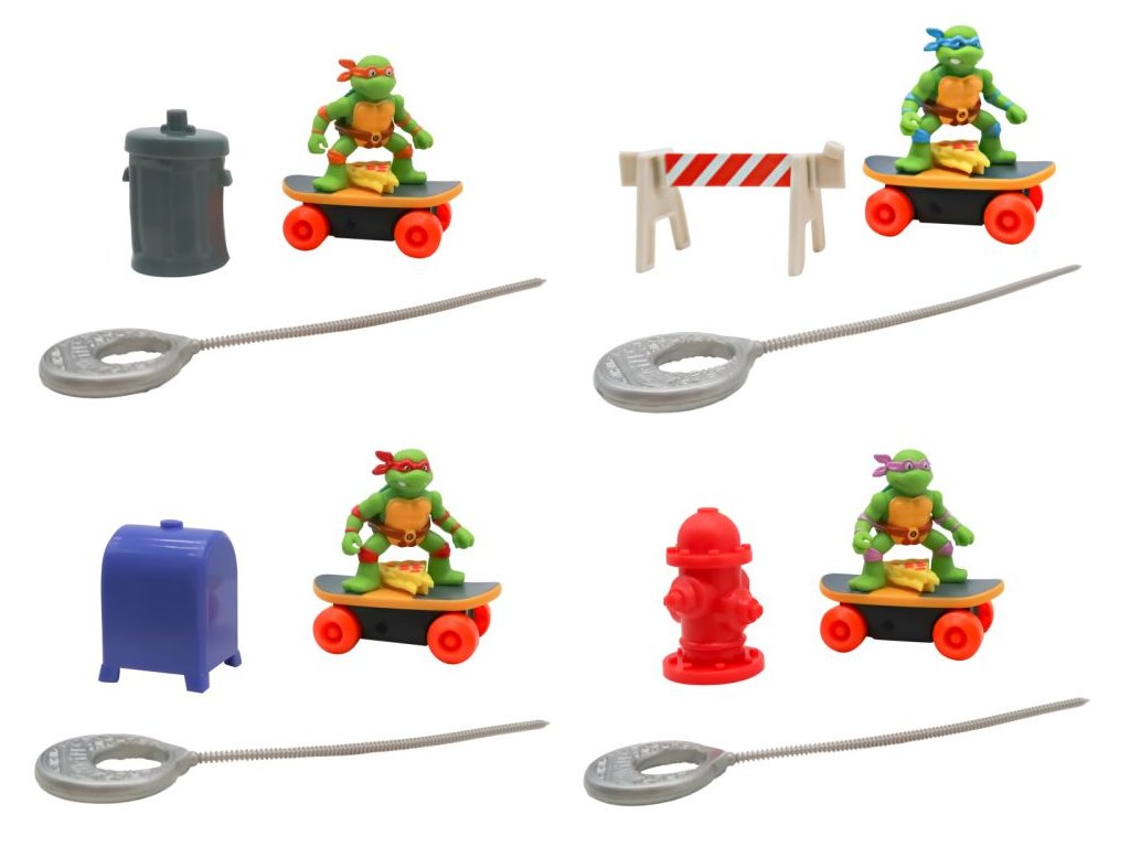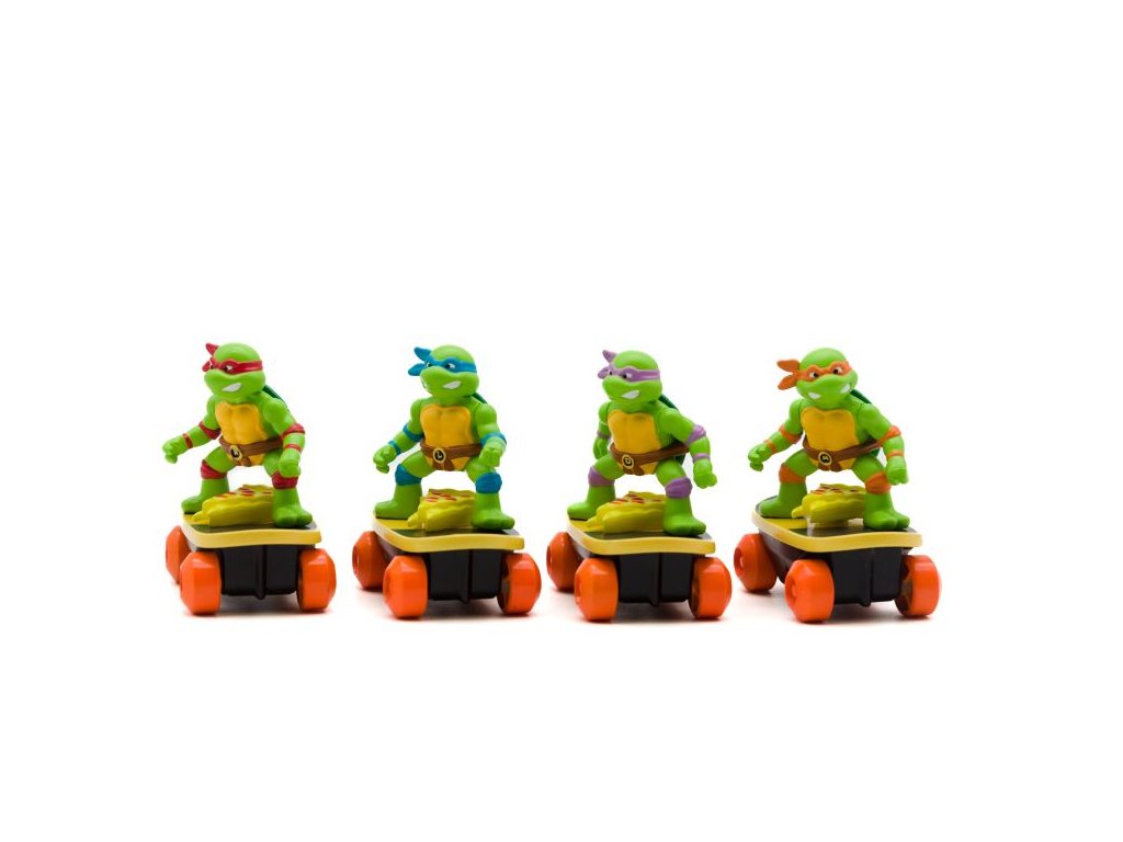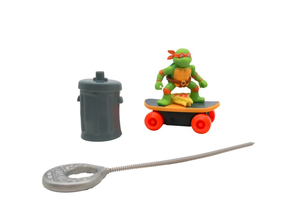 Teenage Mutant Ninja Turtles Switch Kick Skaters je auto-stabilizační skateboard, který vám umožní předvádět skvělé skate triky a pokaždé přistát na všech čtyřech kolech. Auto-stabilizační mechanismus (gyro) uvnitř skateboardu je napájen natahovacím lankem. Stačí zasunout natahovací lanko do skateboardu, vytáhnout a můžete začít provádět ty nejlepší triky s želvami Ninja. Nasbírejte všechny 4 postavy! Vhodné pro děti od 4 let.