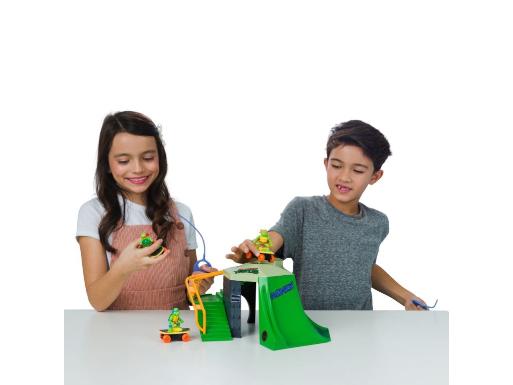 Tento Skate park se schody a zábradlím má vše, co potřebujete k napodobování úžasných skate triků. Hrajte, skákejte a blbněte s Želvy Ninja ve skvělým parku.