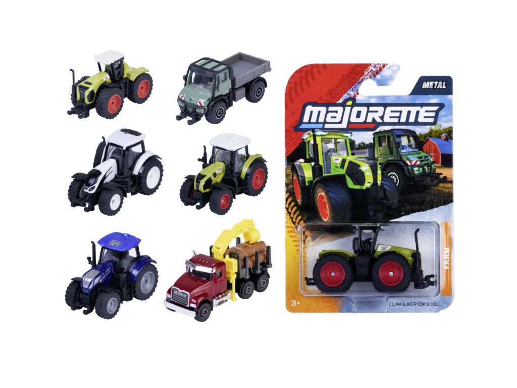 Kovové farmářské vozidlo, traktor na volnoběh, kovové, pohyblivé a/nebo otevírací díly. Délka 7,5 cm. 6 druhů.