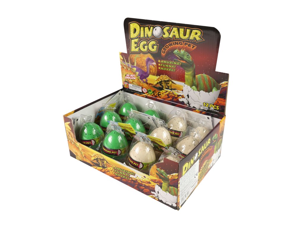 Vložte vejce do nádoby. Nádobu naplňte vodou tak, aby bylo vejce celé pod vodou. Po 12-24 hodinách začne vejce praskat. Pokud klesne hladina vody, vodu dolijte. Po 48 hodinách je dinosaurus vylíhnutý.