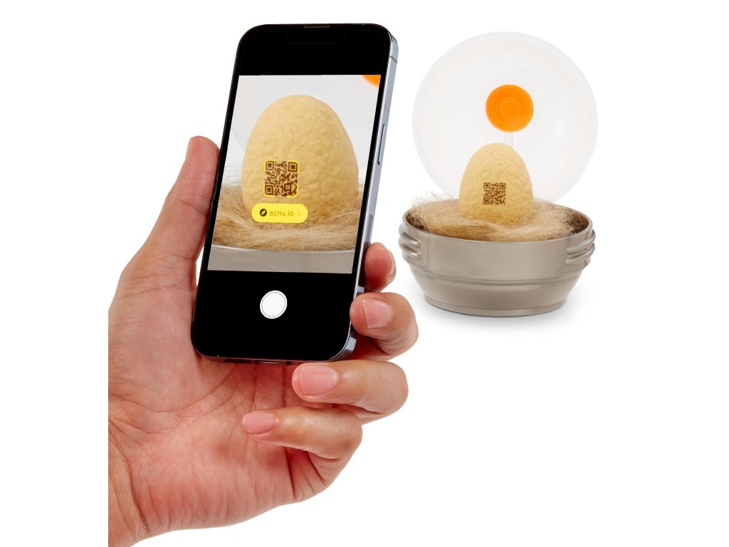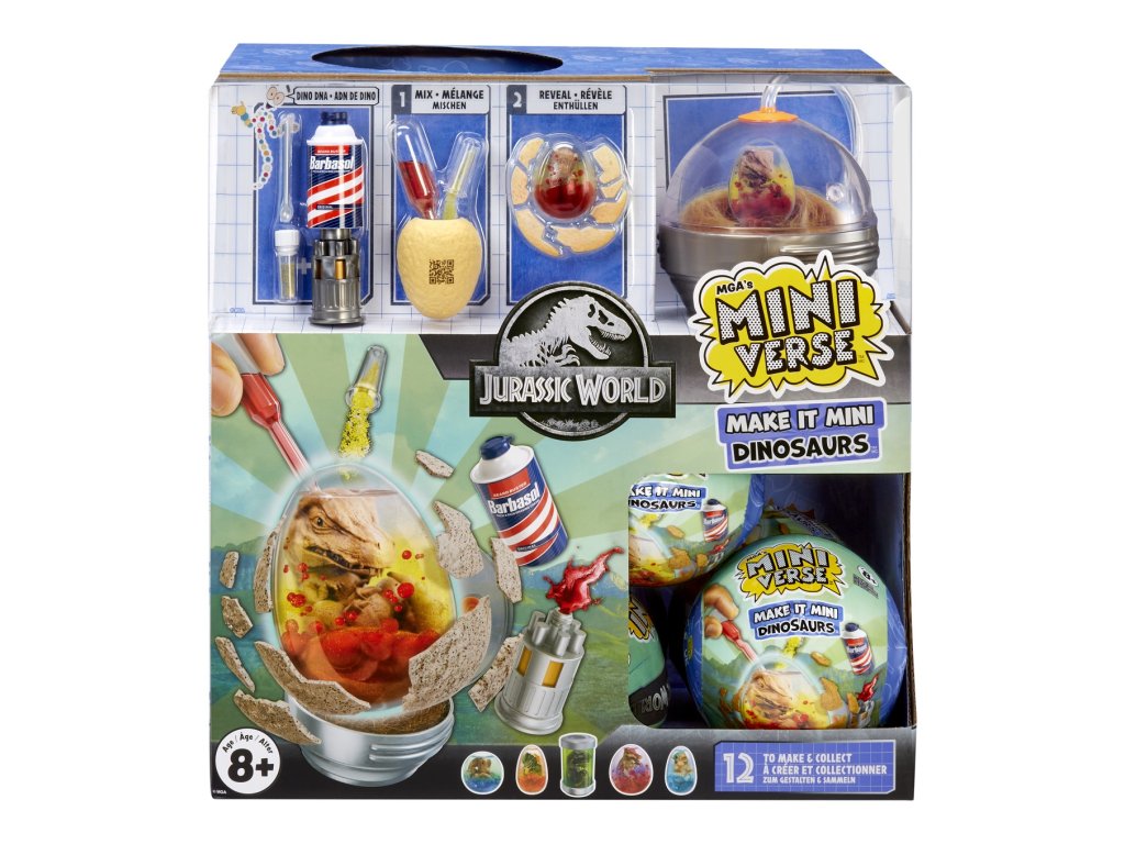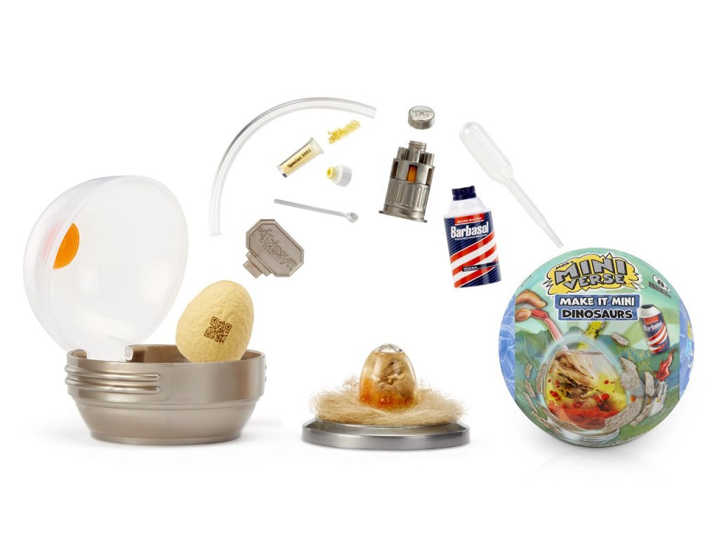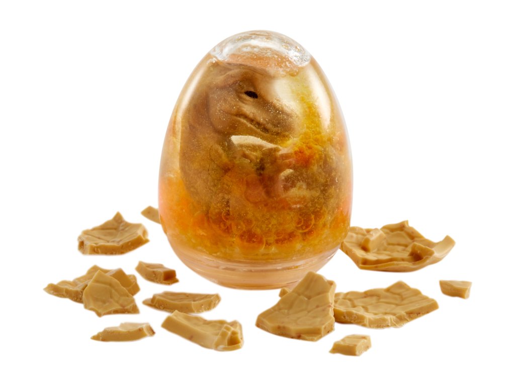 V kouli ve tvaru inkubátoru pro dinosaura najdeš dinosauří DNA a stříkačku. Do dinosauřího vejce, které má QR kód jako ve skutečném filmu, přidej DNA. Pokud máš v balíčku vejce, zatřes s ním, rozbij ho a sleduj, jak vzniká mini dinosaurus.