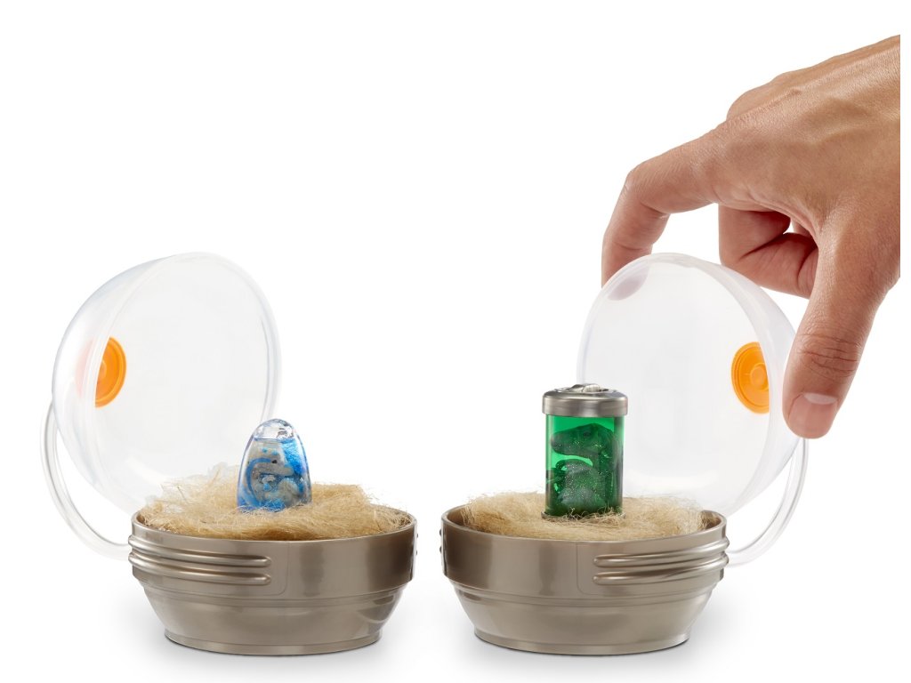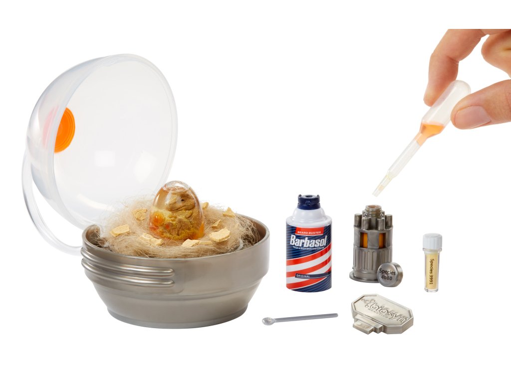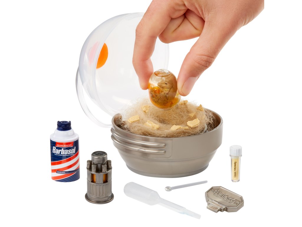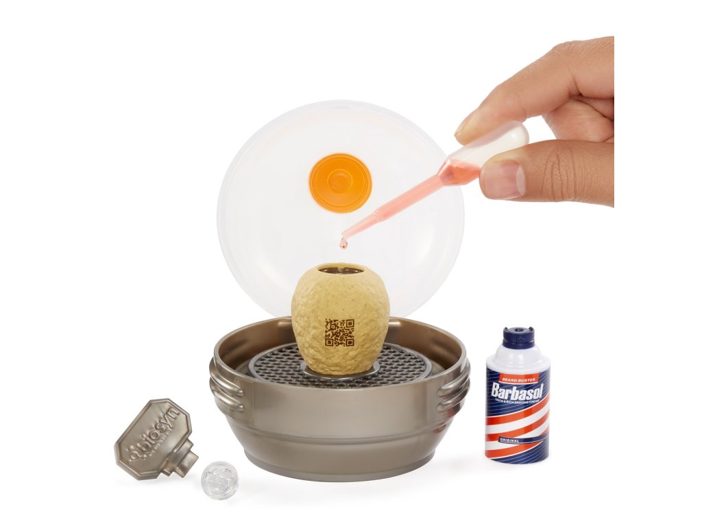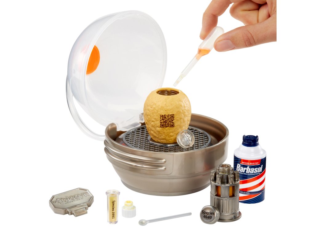V kouli ve tvaru inkubátoru pro dinosaura najdeš dinosauří DNA a stříkačku. Do dinosauřího vejce, které má QR kód jako ve skutečném filmu, přidej DNA. Pokud máš v balíčku vejce, zatřes s ním, rozbij ho a sleduj, jak vzniká mini dinosaurus.