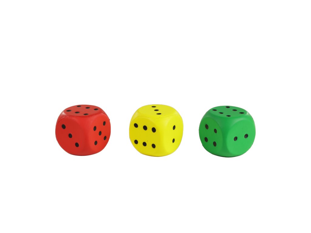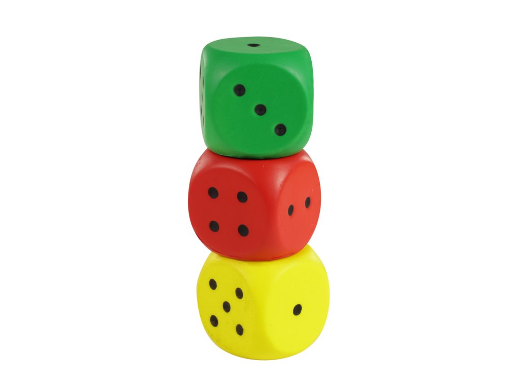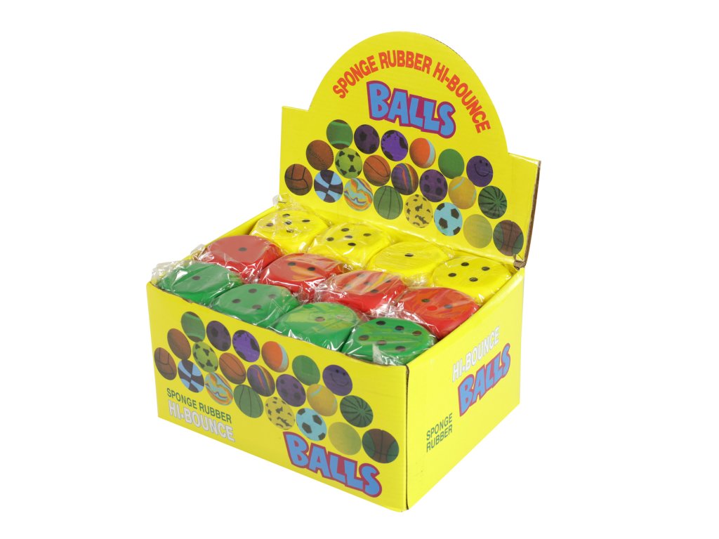 Míček ve tvaru kostky je vyroben z pěny a jeho rozměr je cca 6 x 6 x 6 cm. Ve třech barvách. Minimální množství pro odběr je 24ks.
